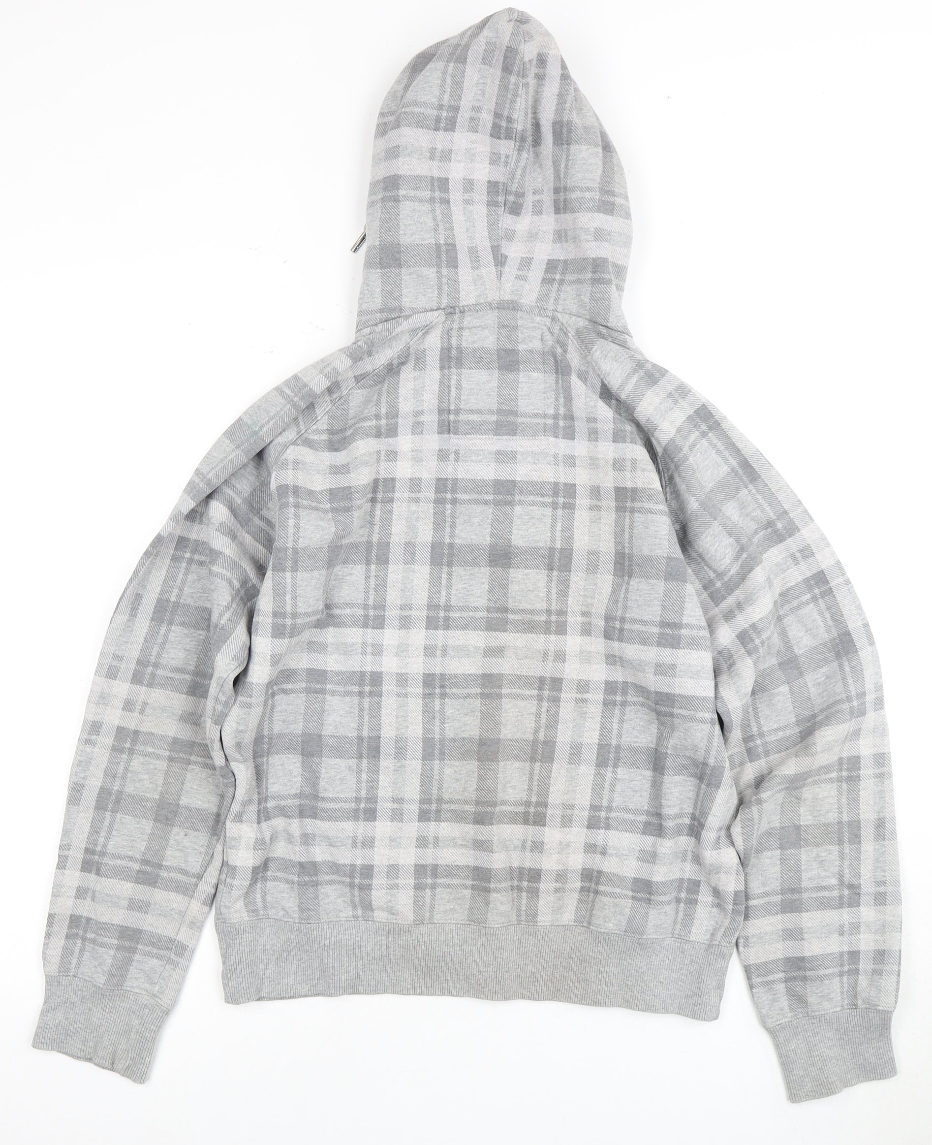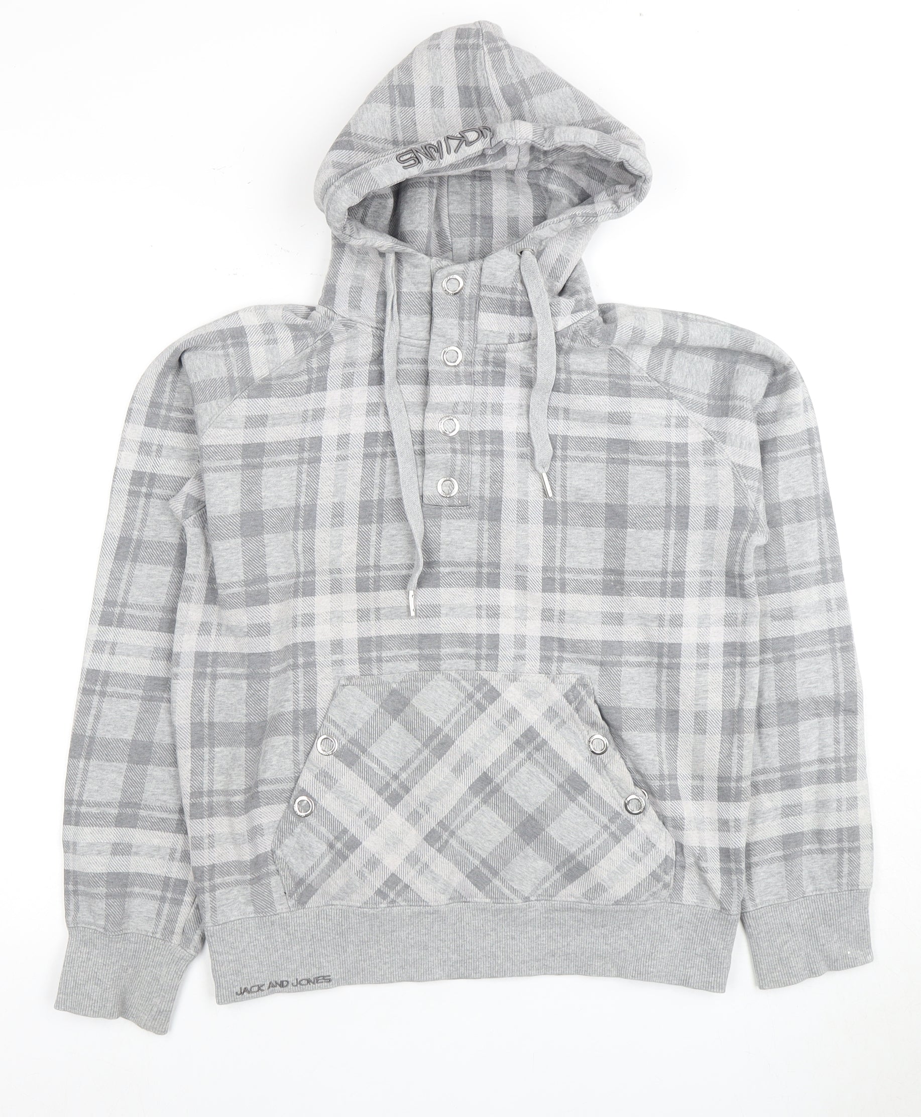 Jack and Jones Men's Grey Plaid Henley Hoodie S