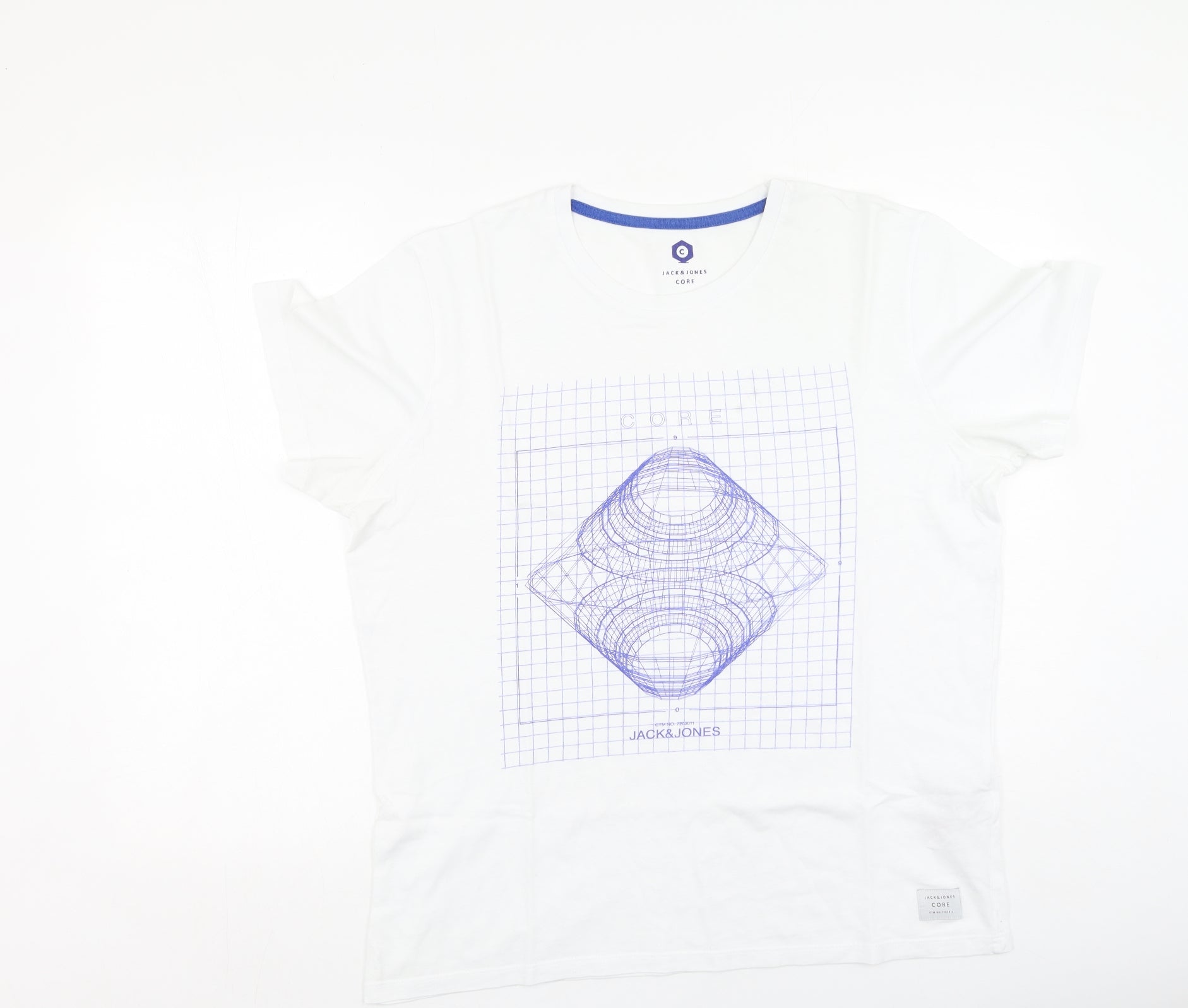 JACK AND JONES Mens White Cotton T-Shirt Size XL Round Neck