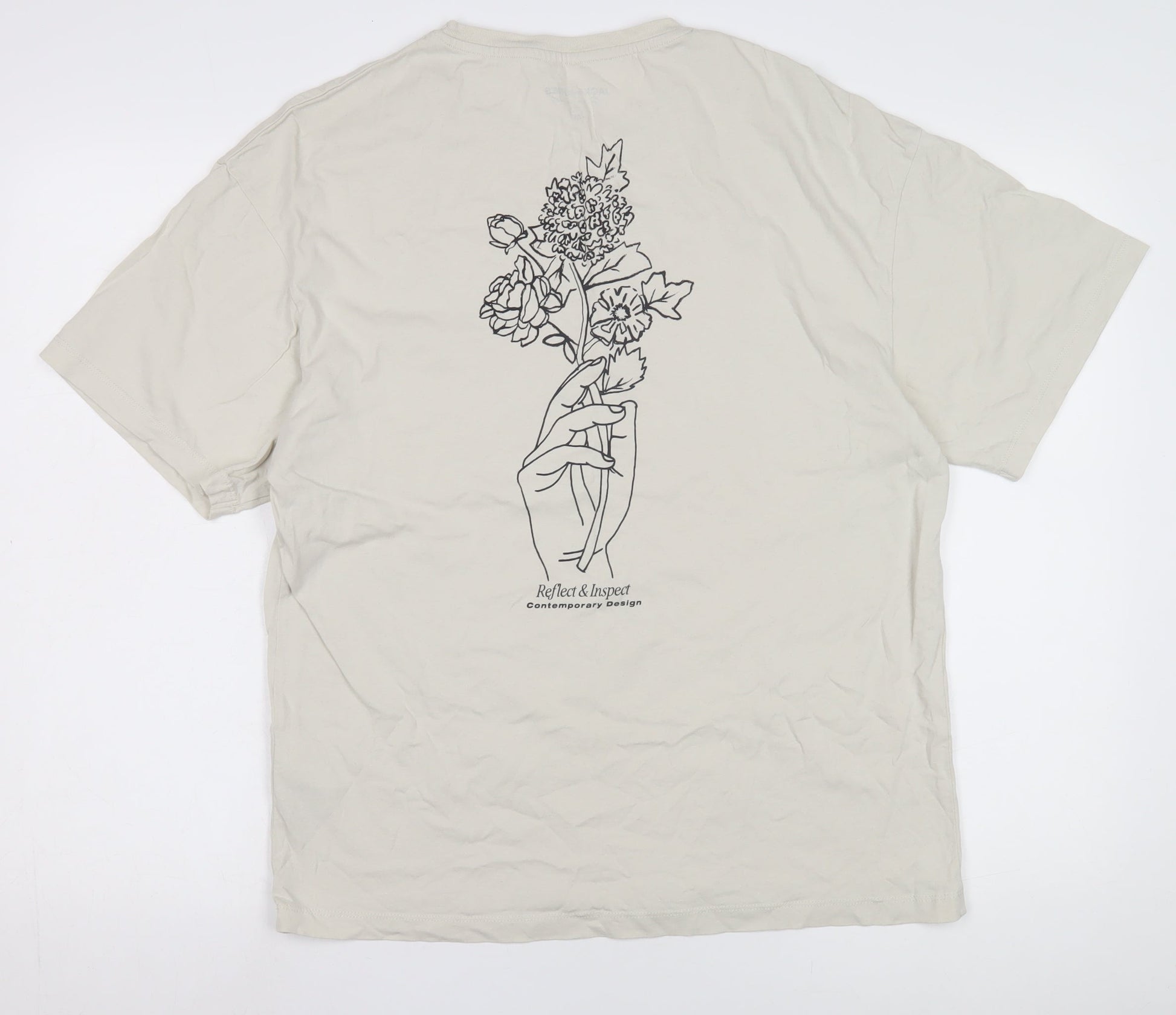 Jack & Jones Beige T-Shirt M Unisex Crew Neck Casual
