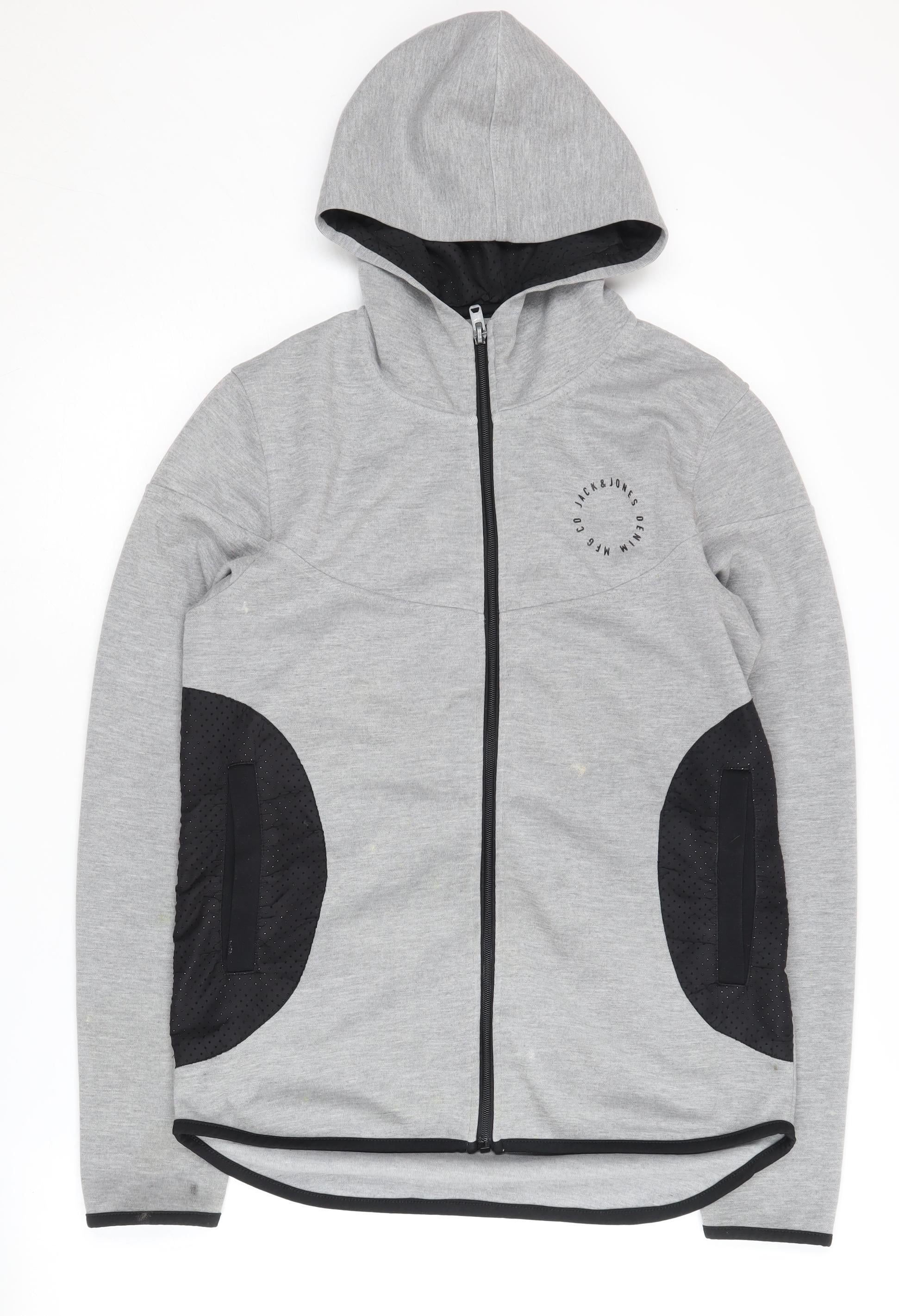 Jack & Jones Grey Full Zip Hoodie, Men's S, Casual Style