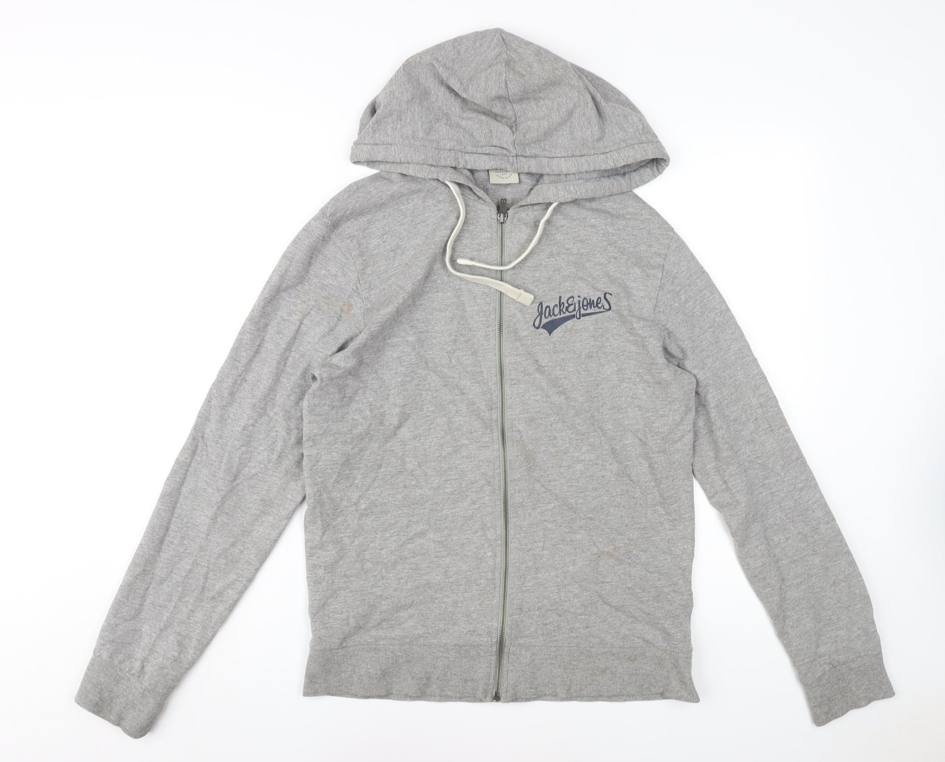 Jack & Jones Grey Men's Hoodie S Full Zip Logo
