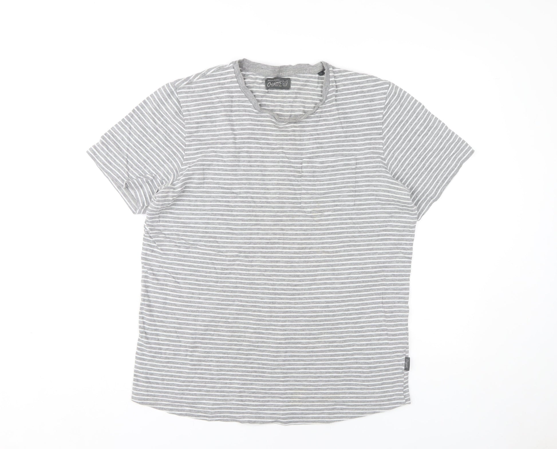 Jack & Jones Grey Striped Crew Neck T-Shirt, Men's L