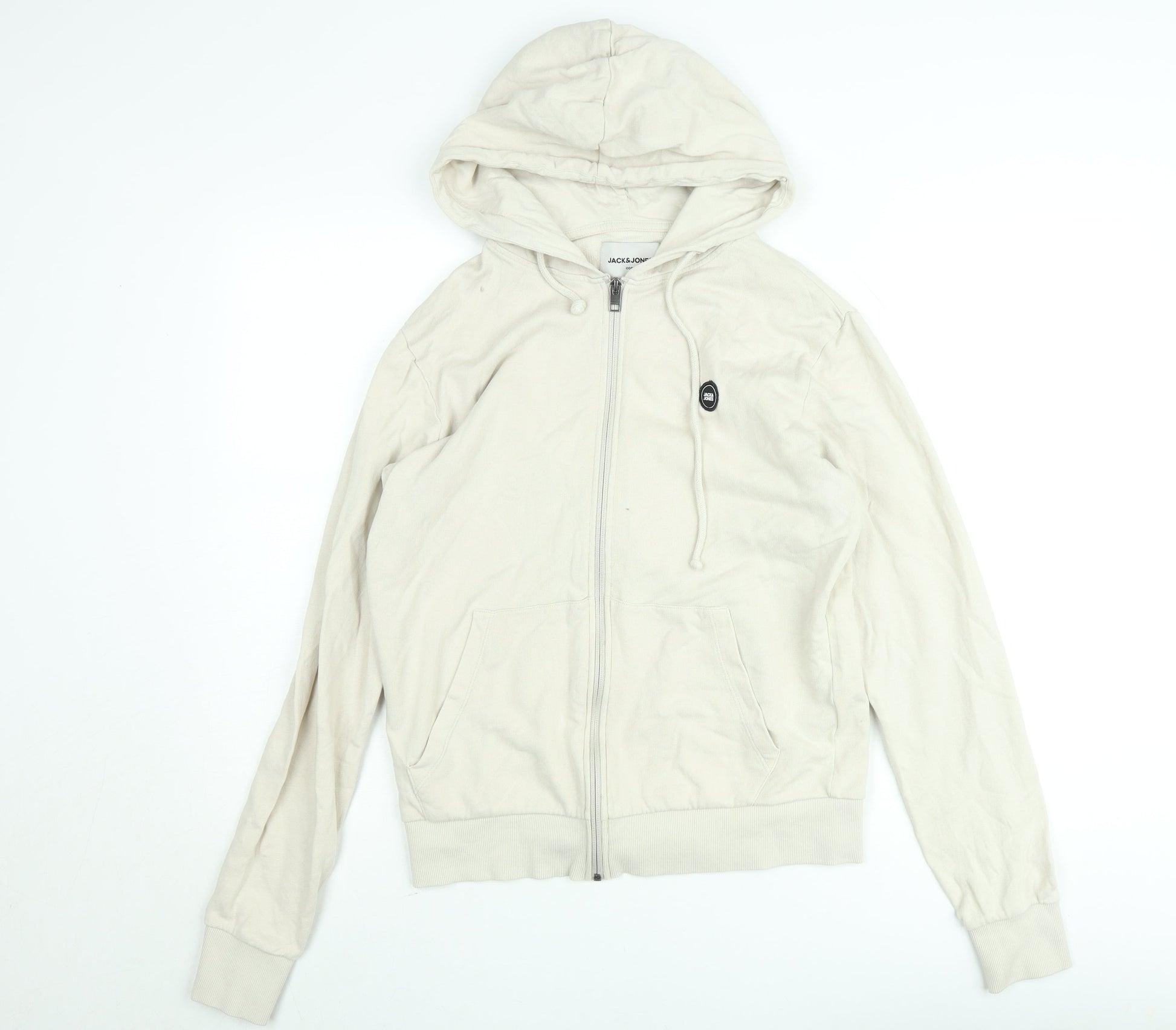 Jack & Jones Men Beige Full Zip Hoodie M Regular Fit