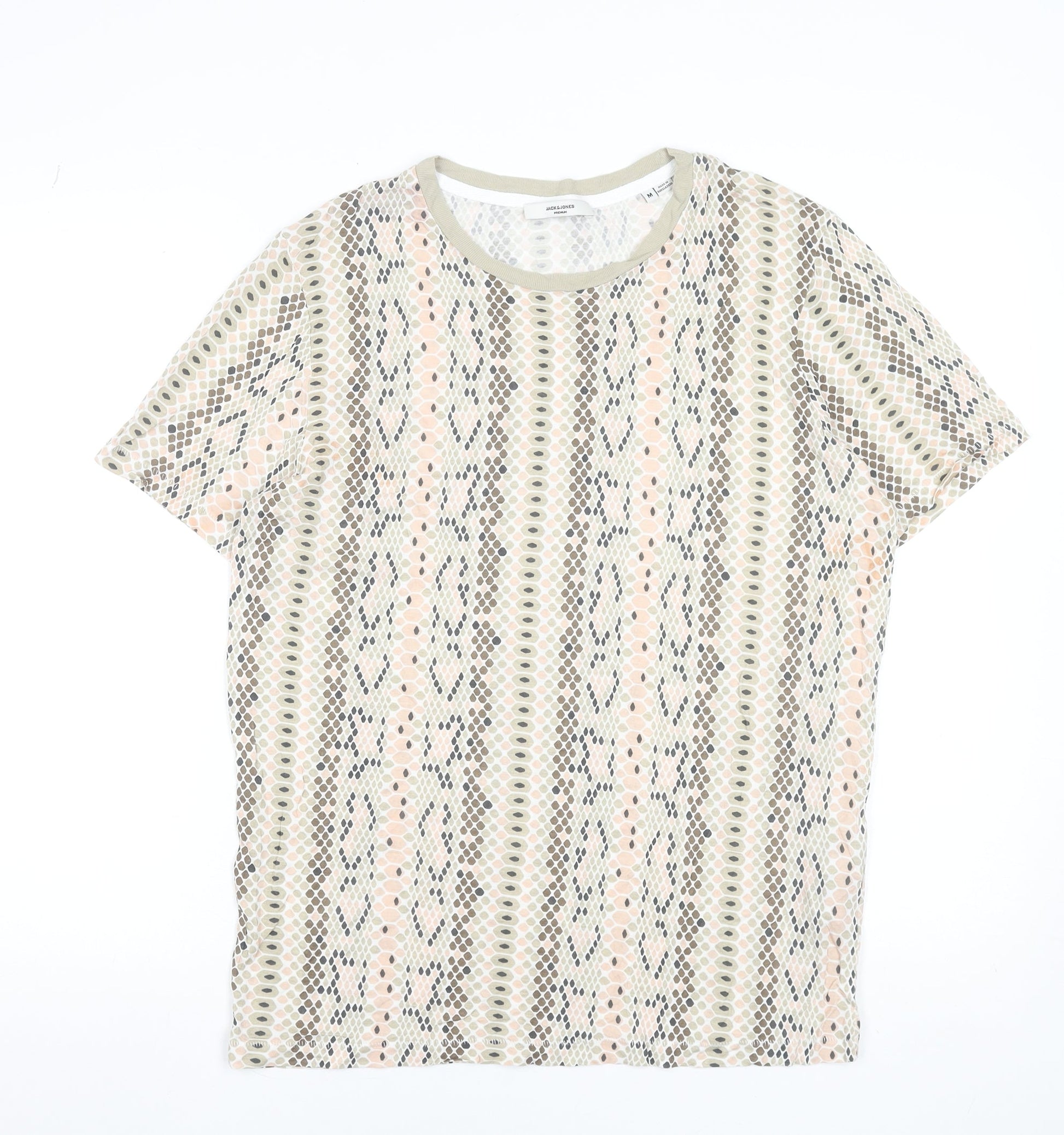 Jack & Jones Men’s Beige Snake Print Short Sleeve Viscose T-Shirt M
