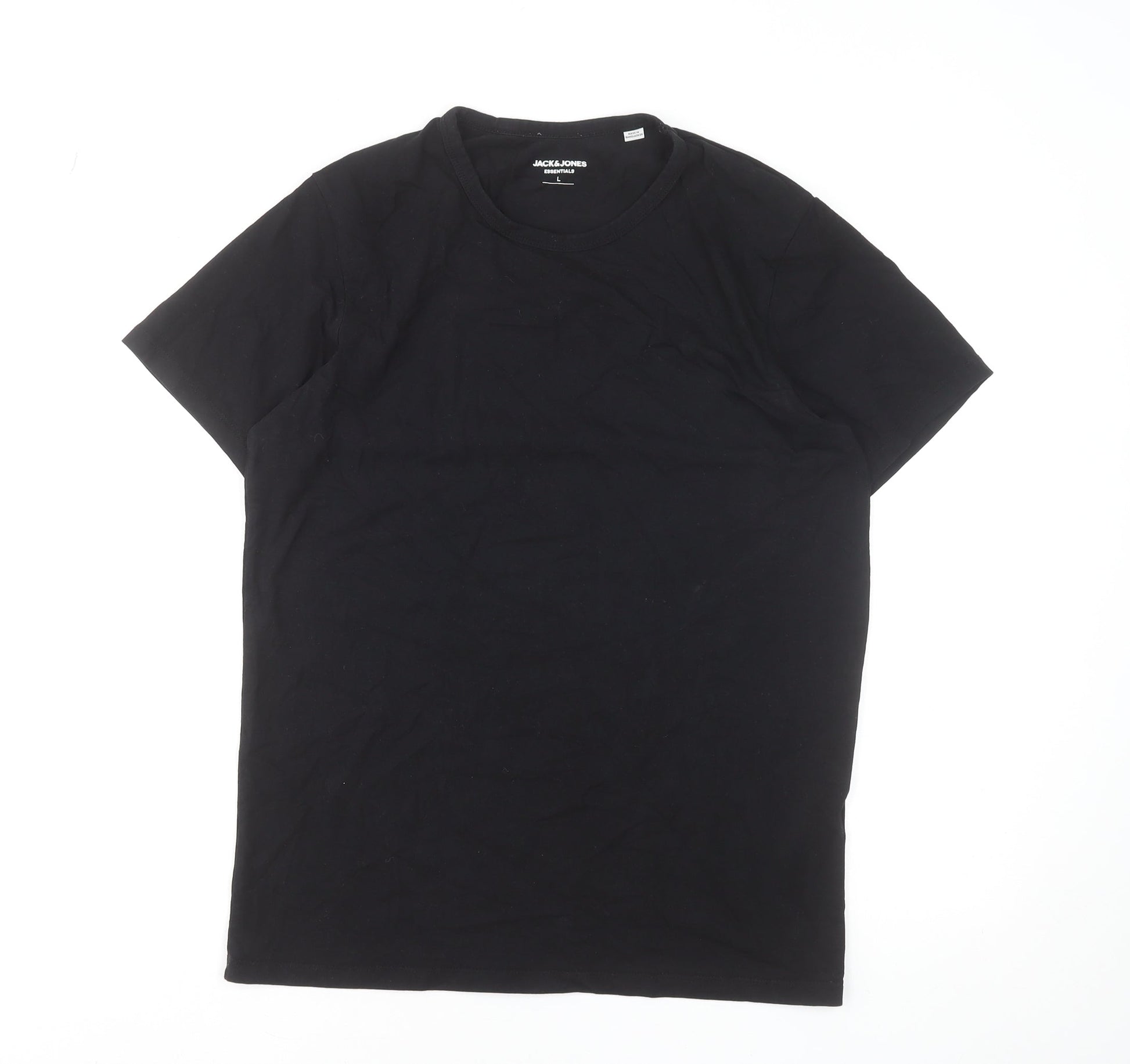 Jack & Jones Men’s Black Cotton Elastane Crew Neck T-Shirt L