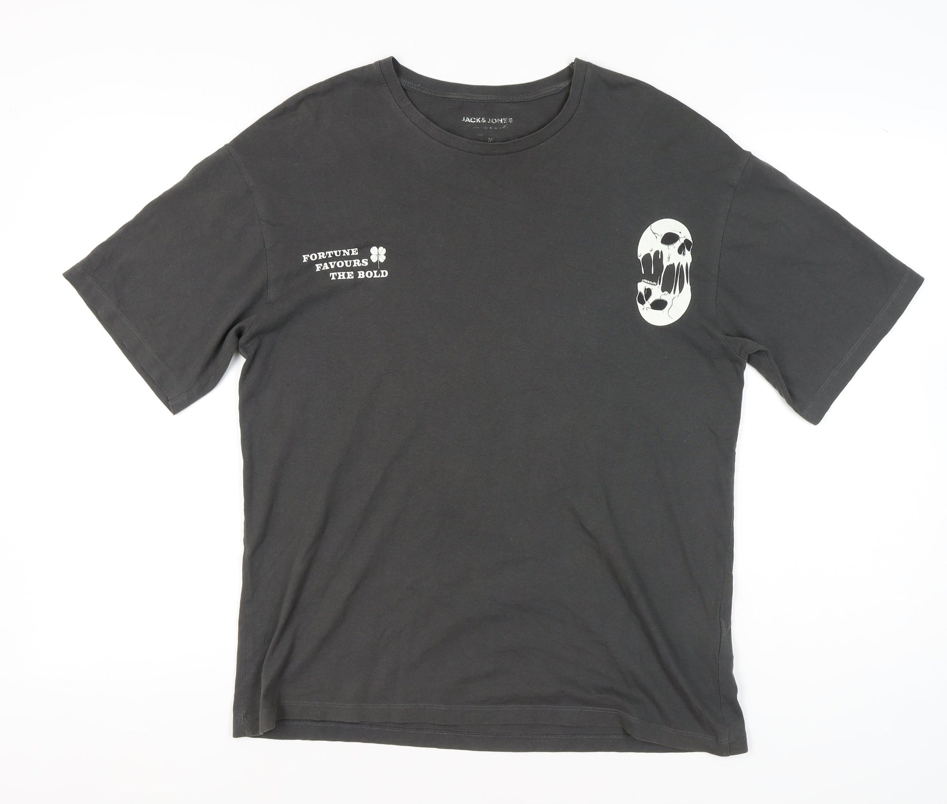Jack & Jones Men’s Black Skull Graphic T-Shirt Size M Short Sleeve