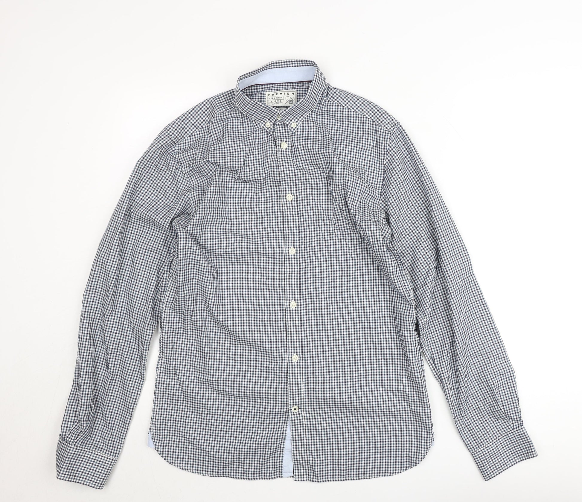 Jack & Jones Men’s Blue Check Slim Fit Long Sleeve Button-Up Shirt Size M
