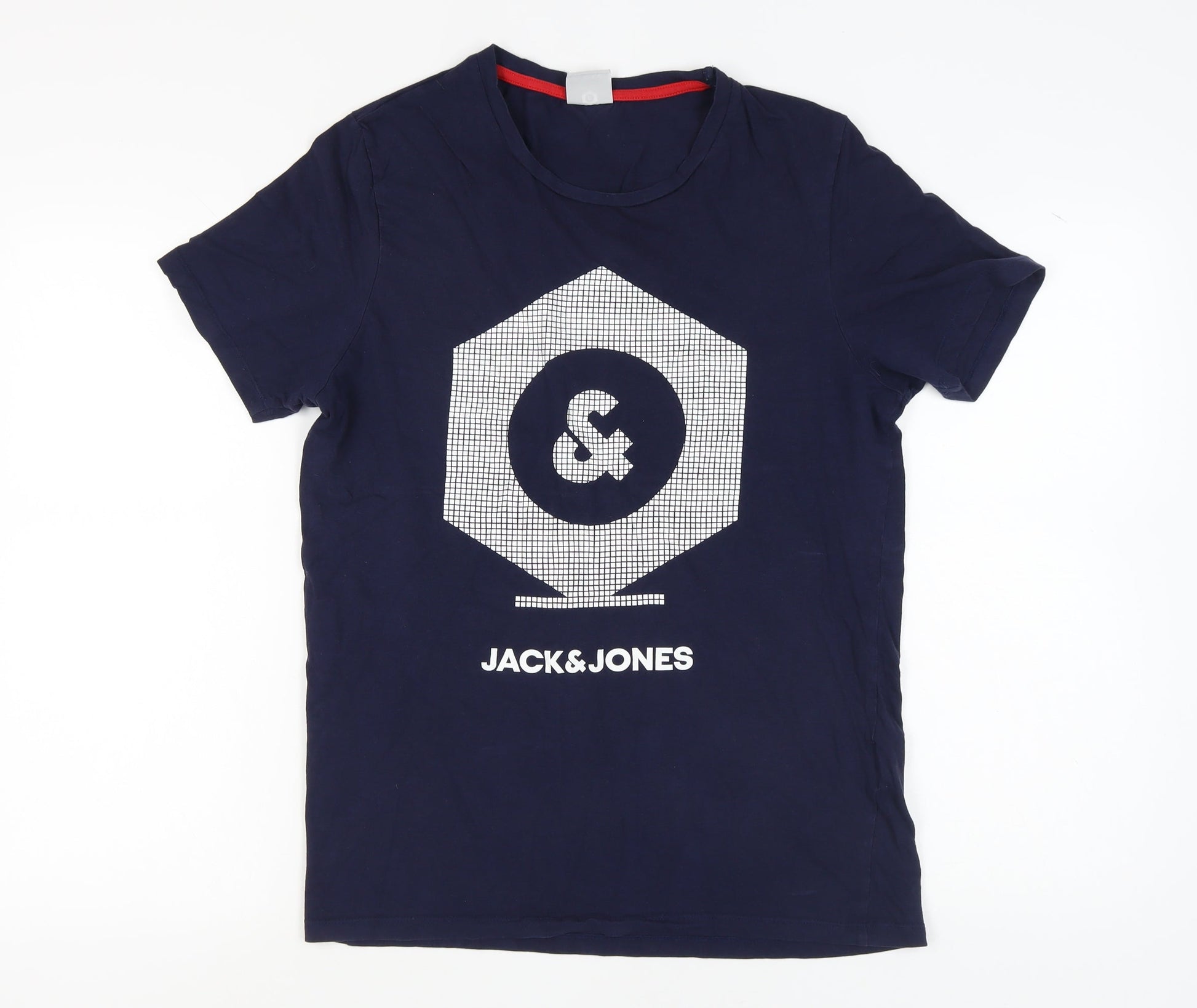 Jack & Jones Men’s Blue Logo T-Shirt, Size L, Crew Neck