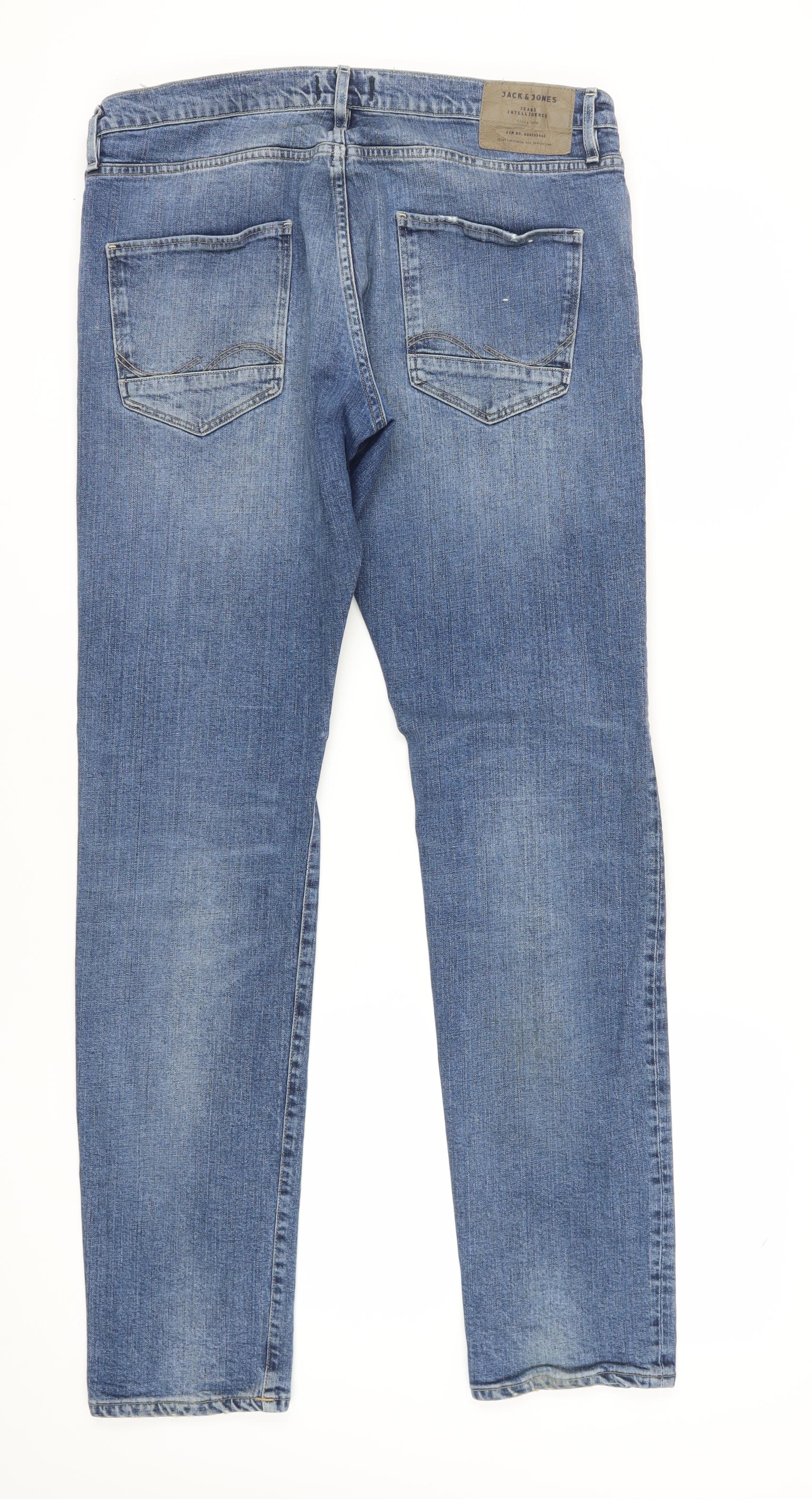 Jack & Jones Men’s Blue Straight Fit Distressed Jeans 36