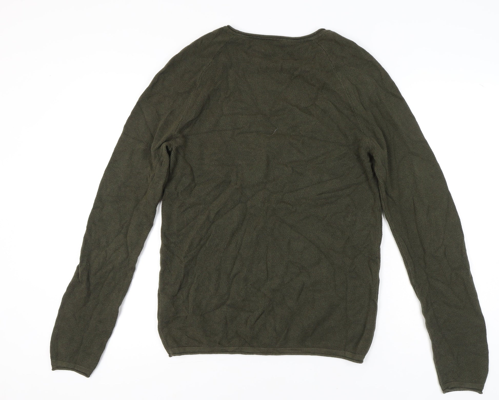 Jack & Jones Men’s Green Cotton Waffle-Knit Jumper Size L