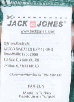 Jack & Jones Men’s Green Quilted Full Zip Hoodie XL Cotton