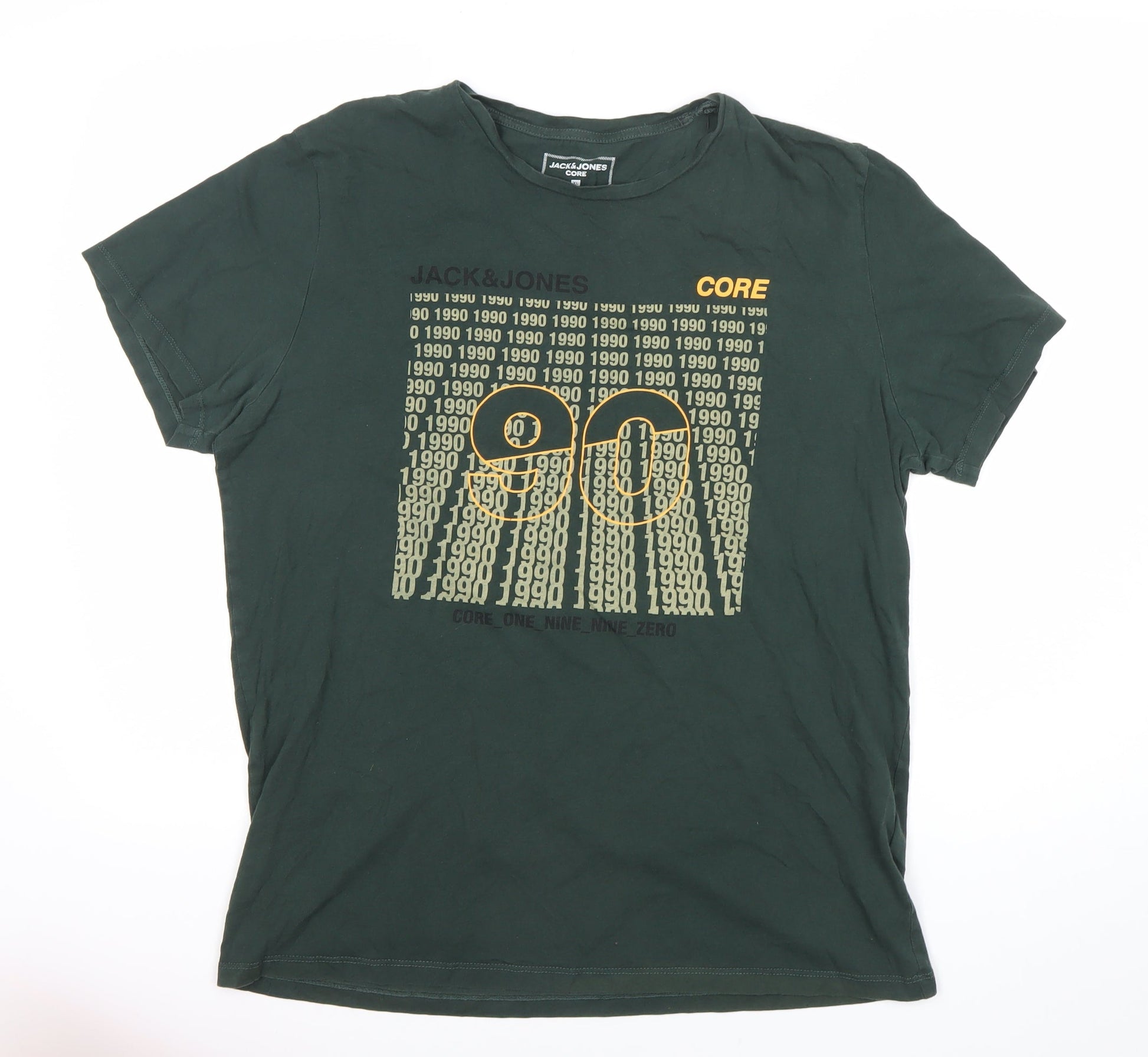 Jack & Jones Men’s Green XL Crew Neck 90s Retro Graphic T-Shirt