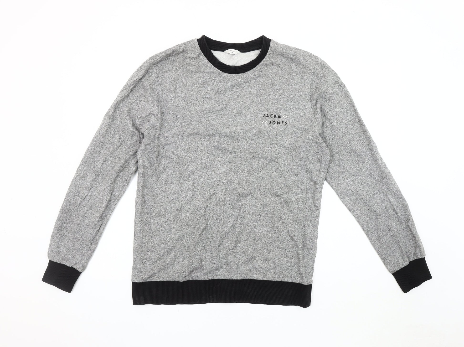 Jack & Jones Men’s Grey Pullover Jumper, Large, Crew Neck