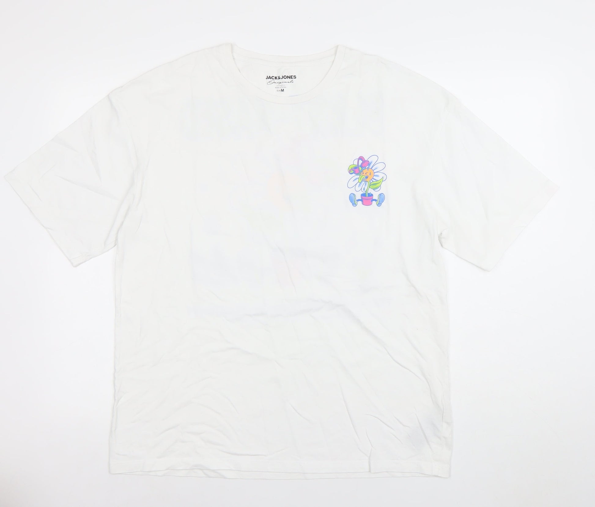 Jack & Jones Men’s White Graphic Plant-Based Cotton T-Shirt M