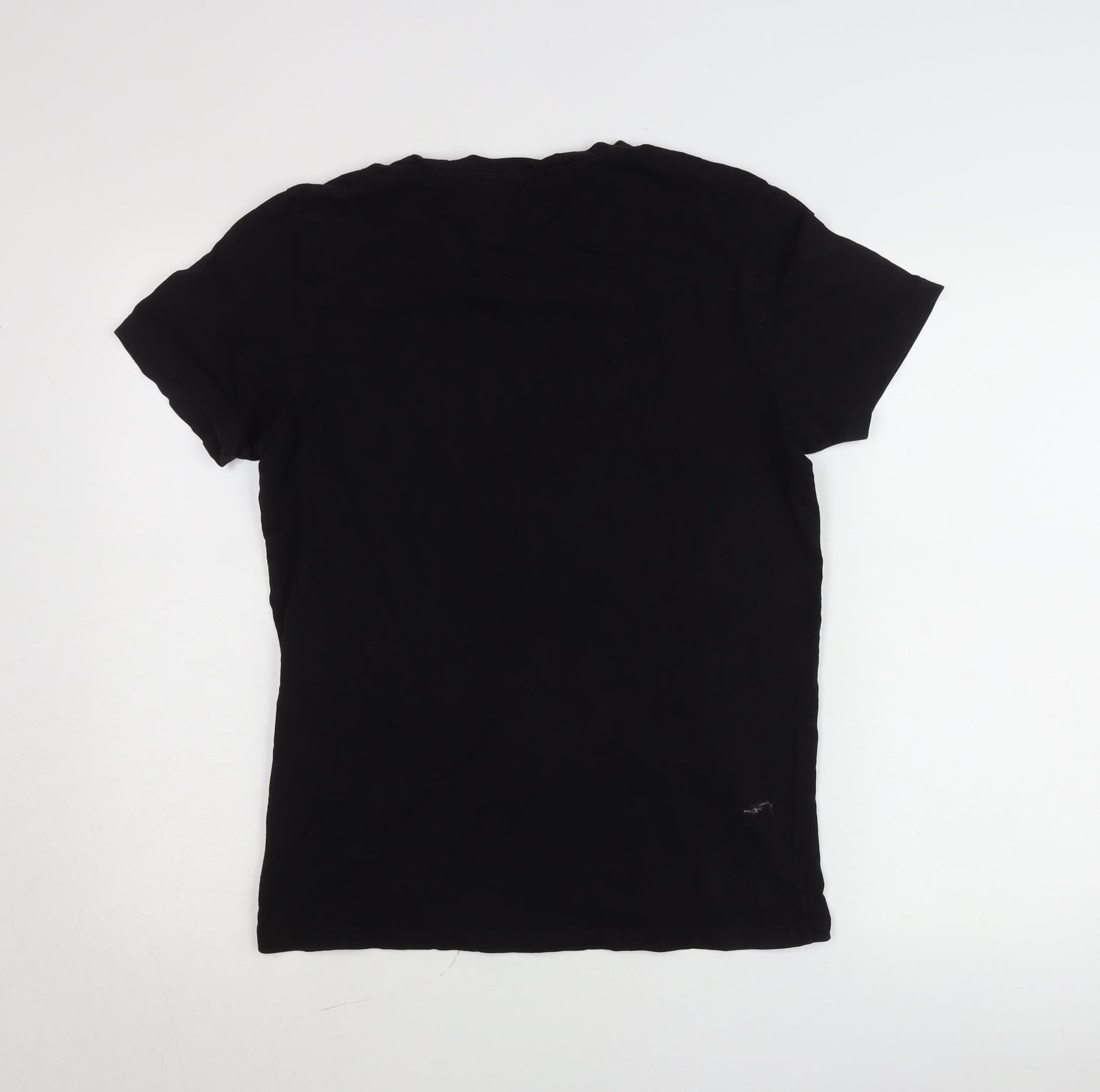Jack & Jones Mens Black Graphic Print Crew Neck T-Shirt Size M