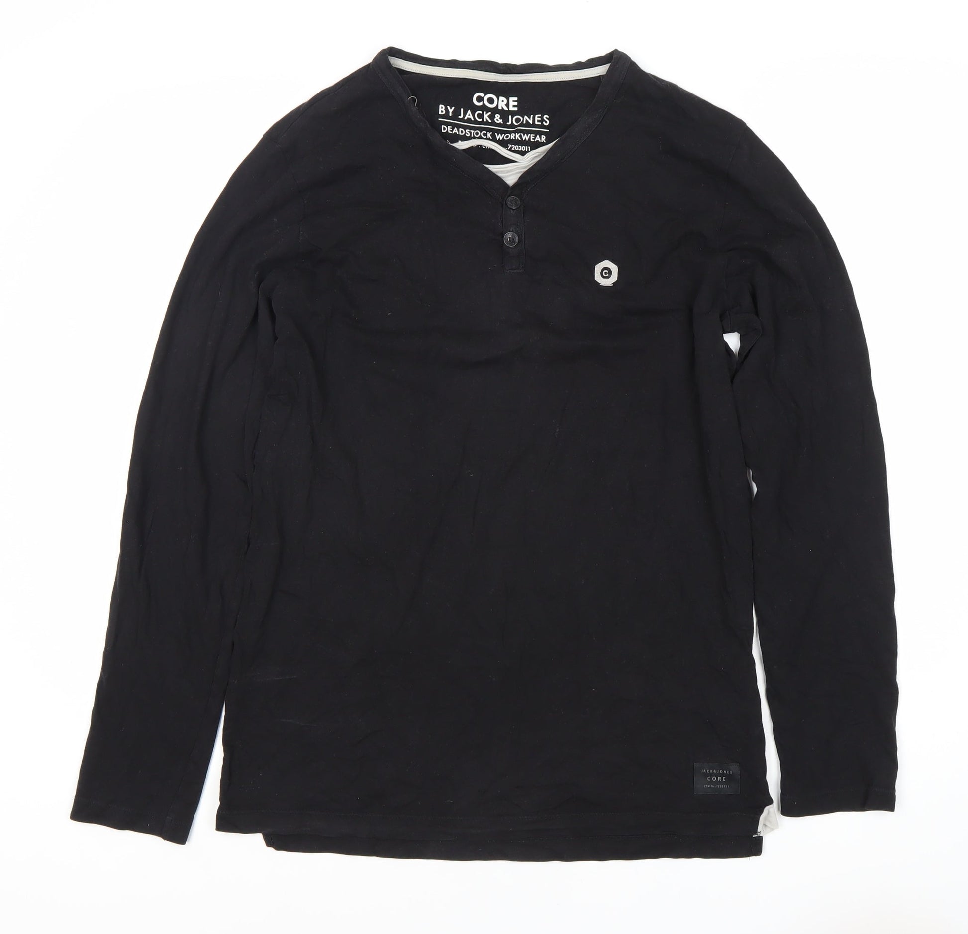 Jack & Jones Men's Black Henley Long Sleeve T-Shirt M