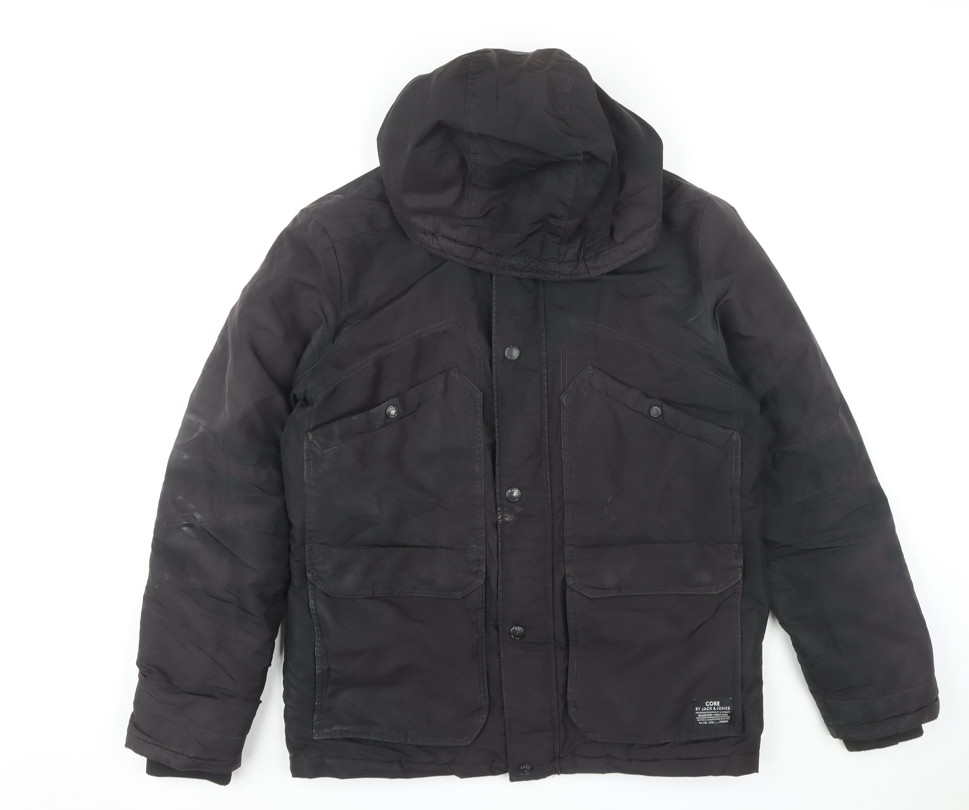 Jack & Jones Men's Black Hooded Parka Jacket L