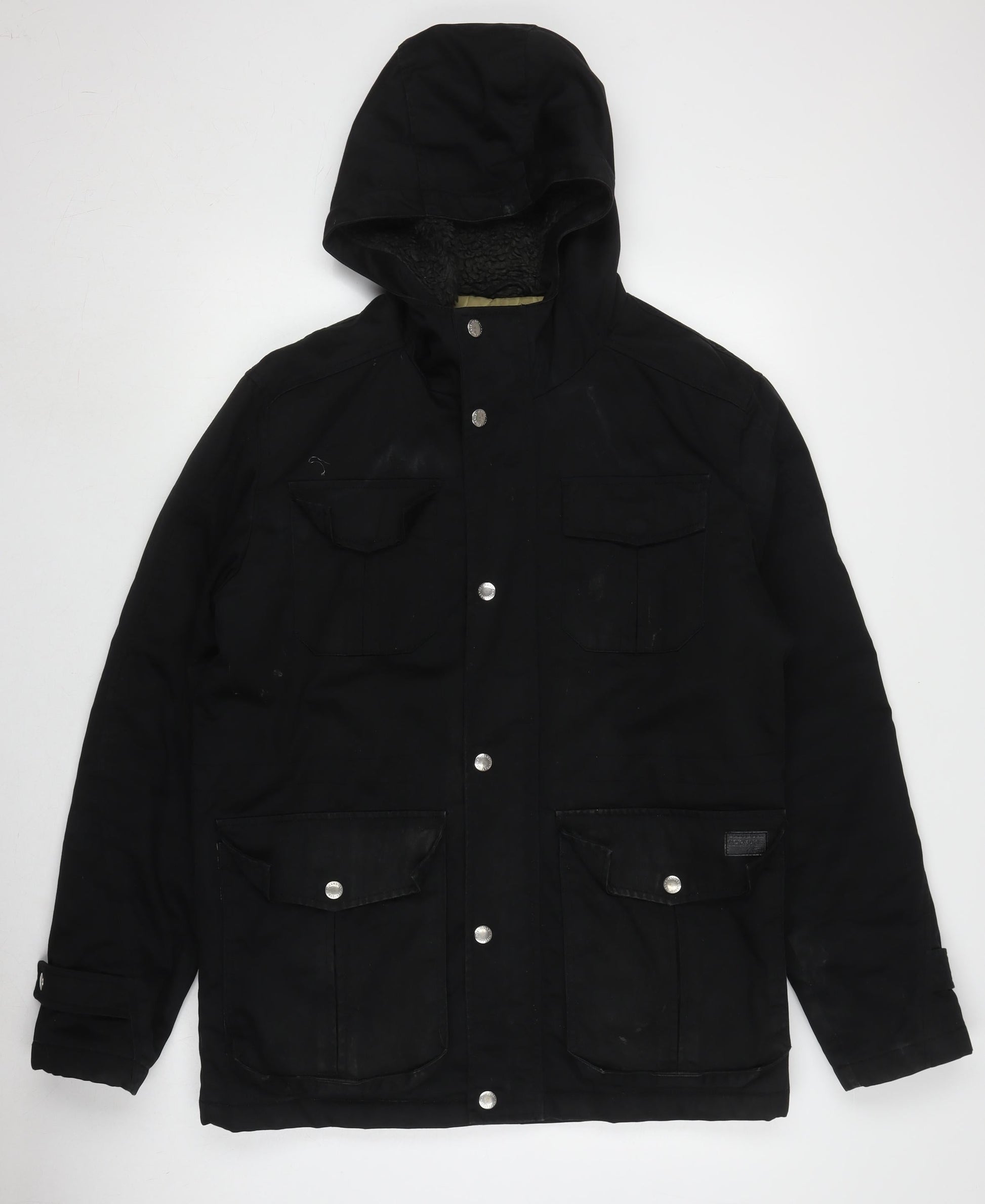 Jack & Jones Men's Black Parka Jacket, L, Hooded Autumn/Winter