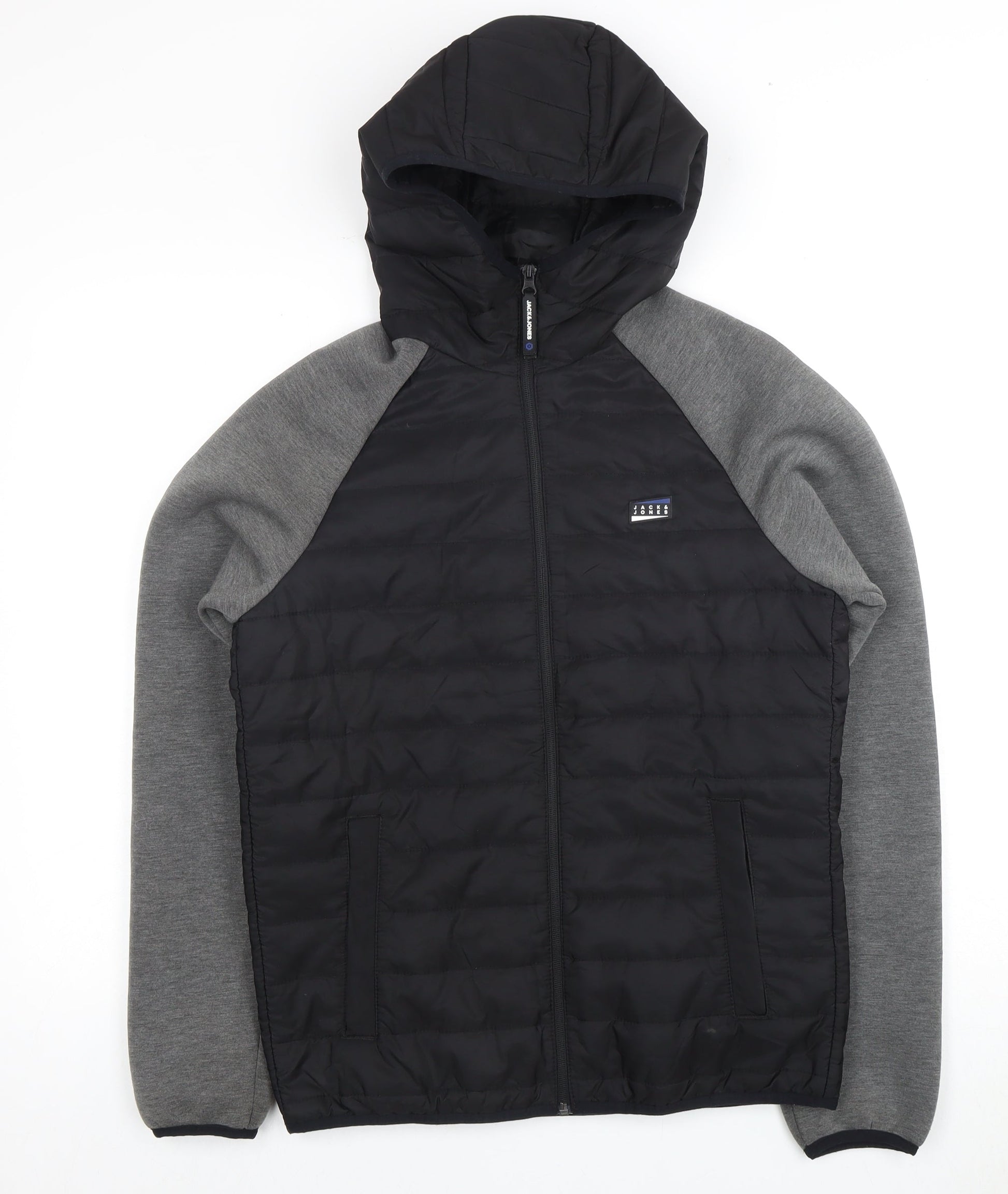 JACK & JONES Men's Black Puffer Jacket S Hooded Casual