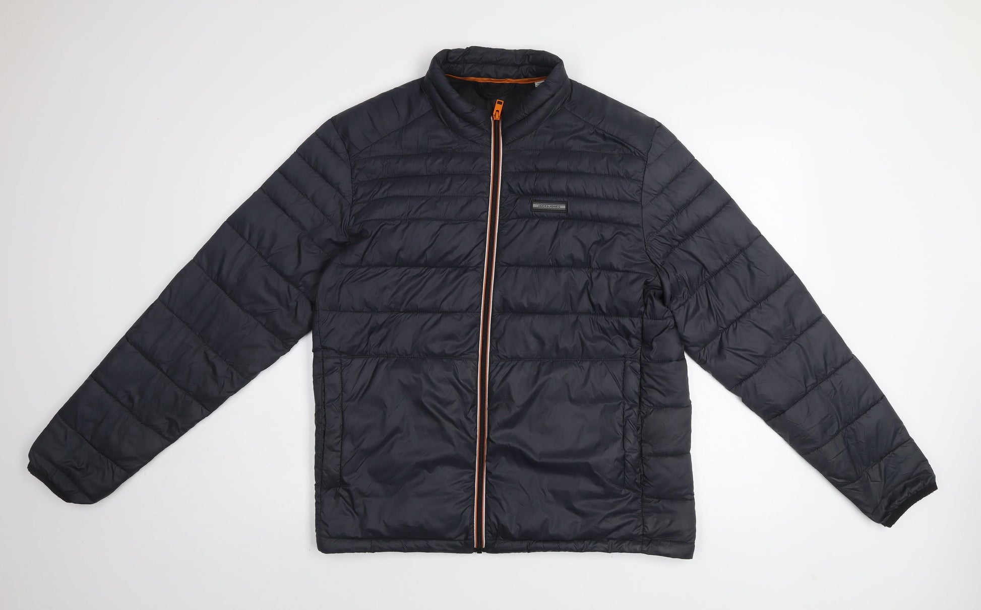 Jack & Jones Men's Black Puffer Jacket Size M Lightweight Quilted Zip Coat