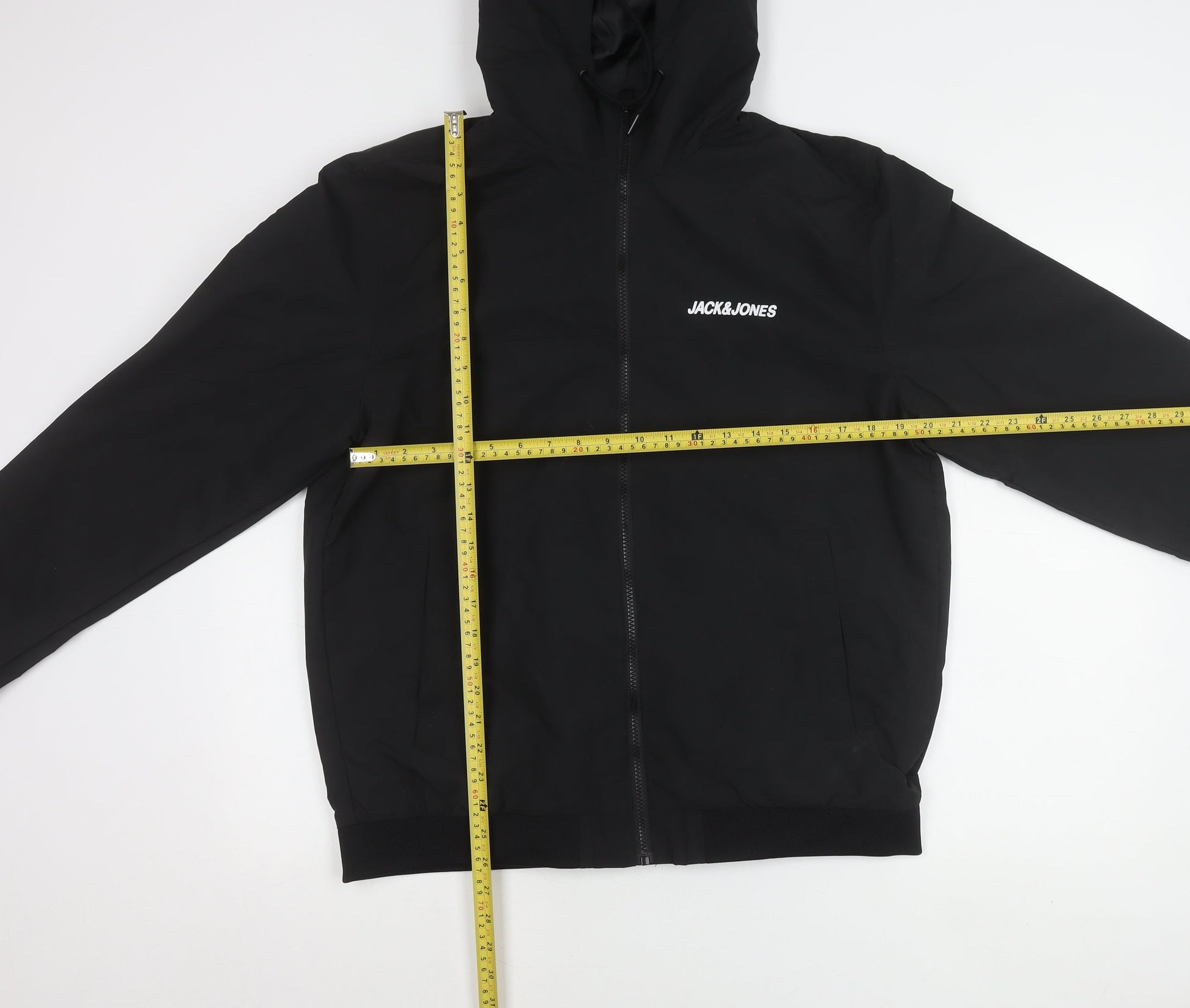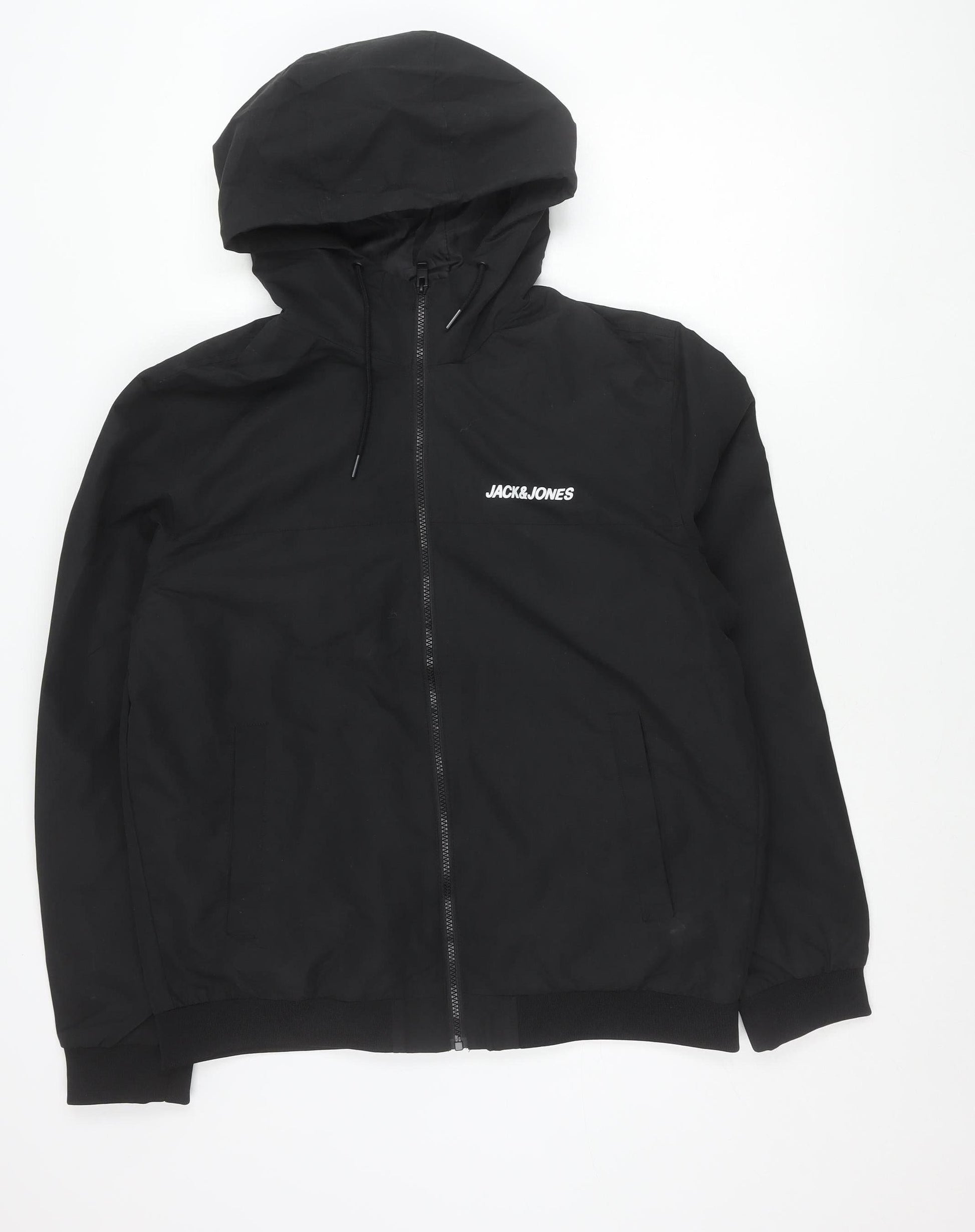 Jack & Jones Mens Black XL Hooded Windbreaker Jacket