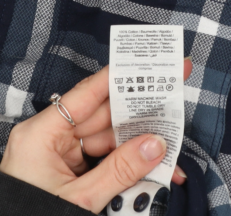 Jack & Jones Men's Blue Check Slim Fit Long Sleeve Button-Up Shirt Size M