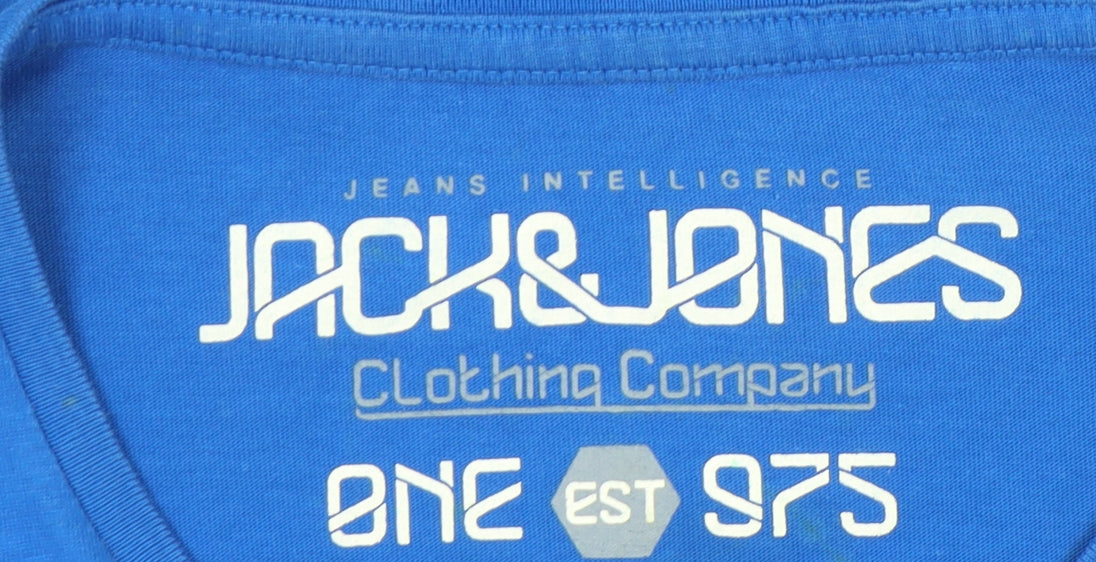 Jack & Jones Men's Blue Cotton Crew Neck Short Sleeve T-Shirt Size M