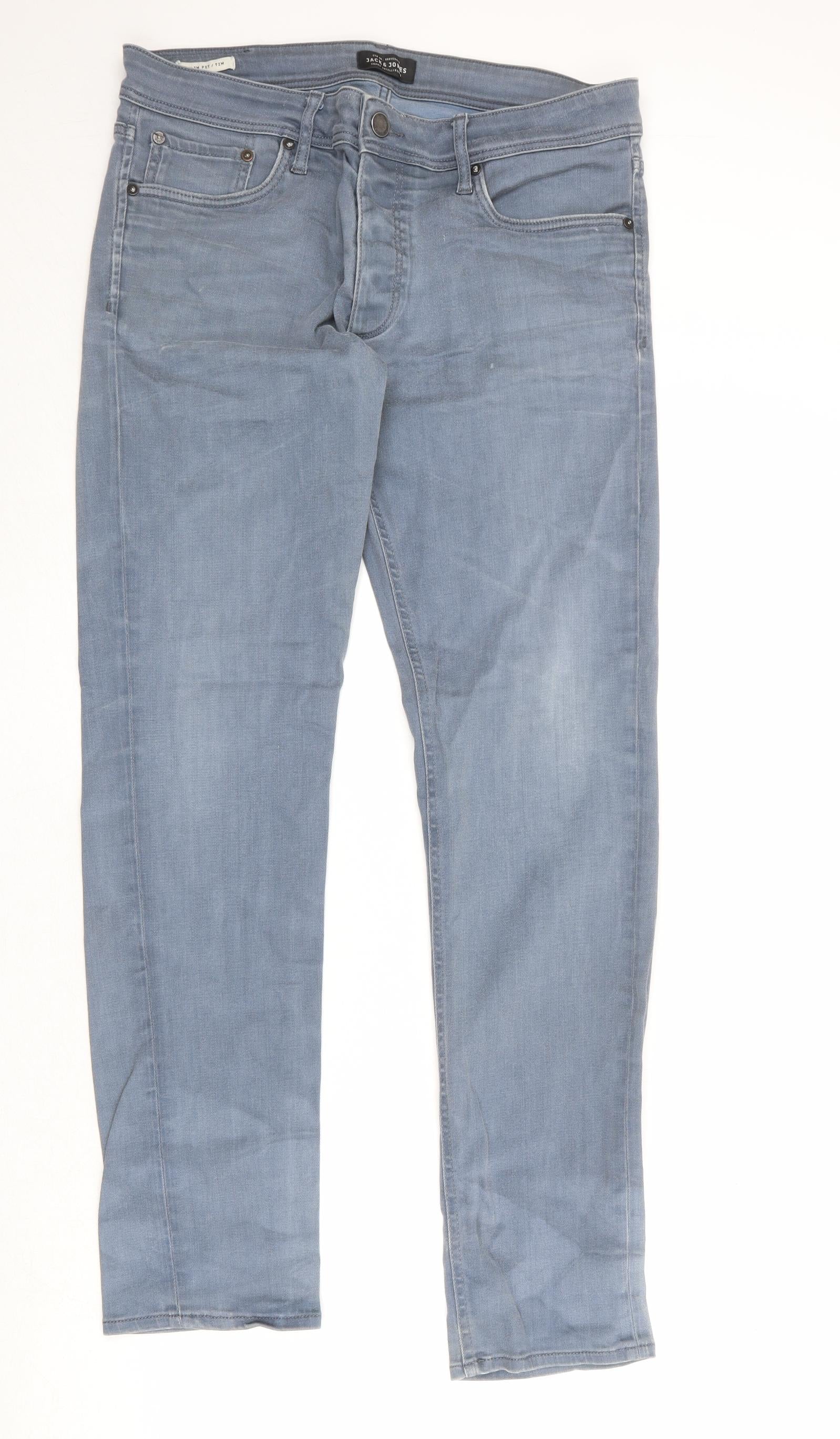 JACK & JONES Mens Blue Cotton Straight Jeans Size 34 in Regular Zip