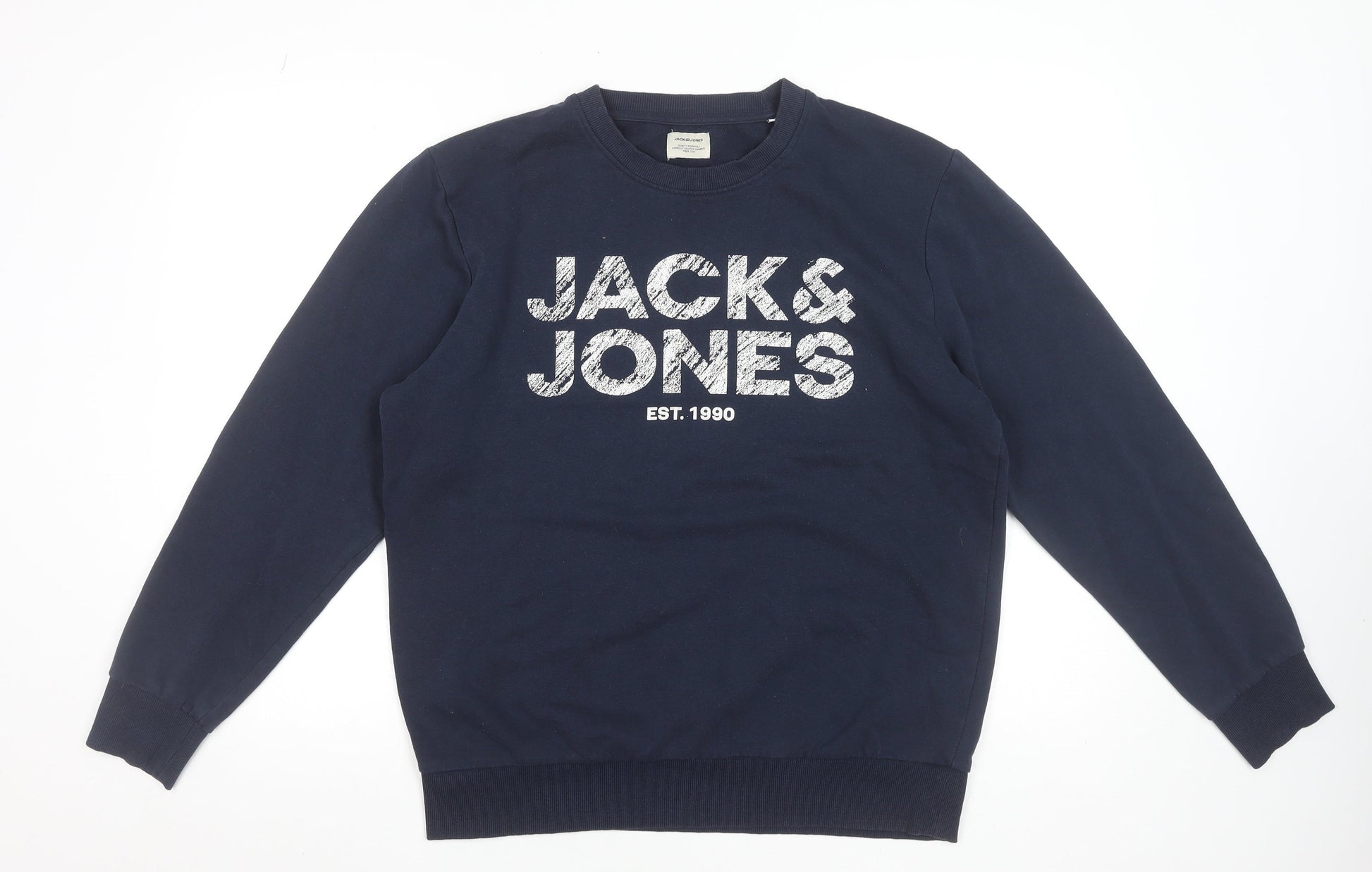 Jack & Jones Men's Blue Crew Neck Logo Sweatshirt Size M