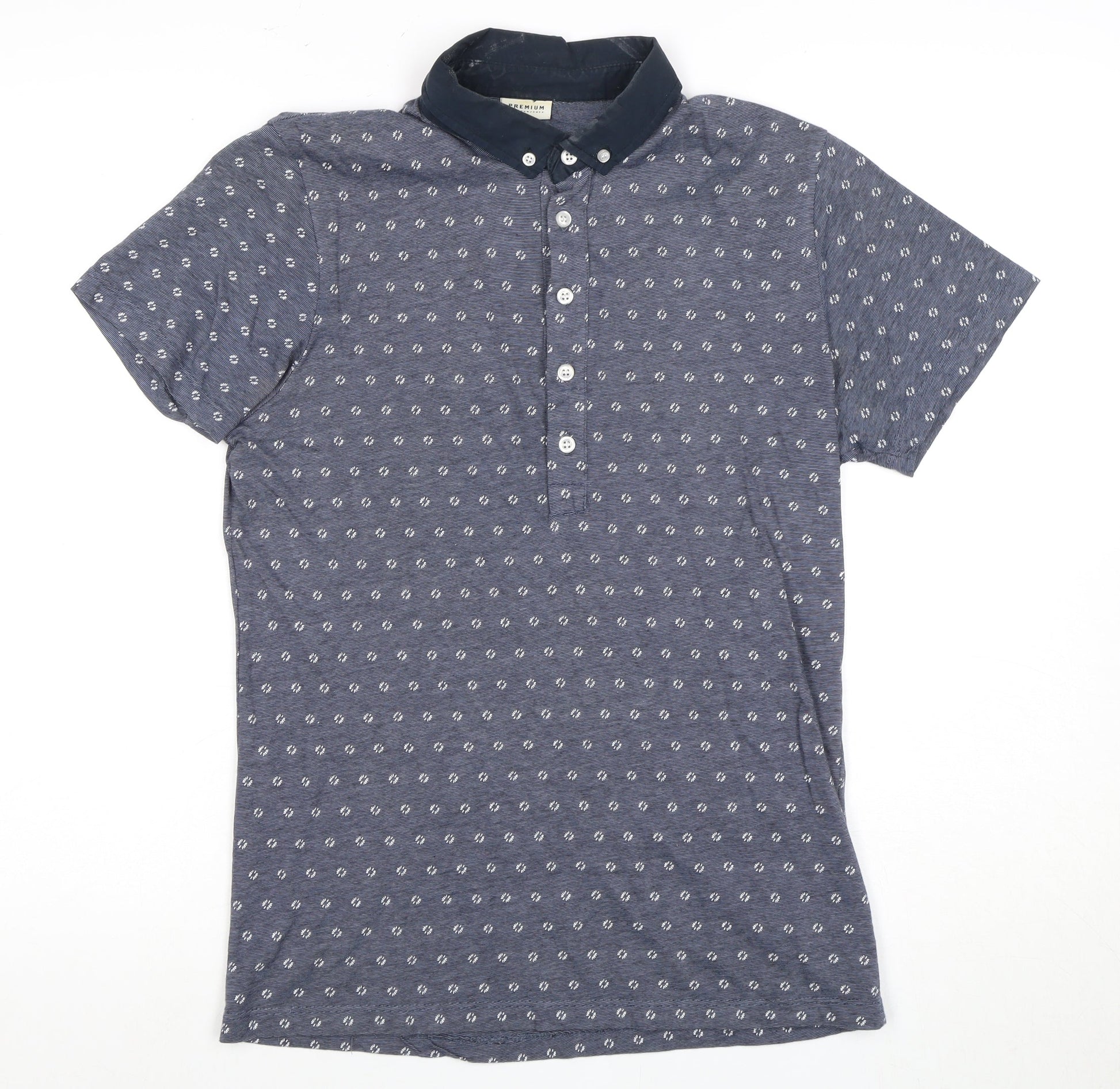 Jack & Jones Men's Blue Geometric Polo Shirt M
