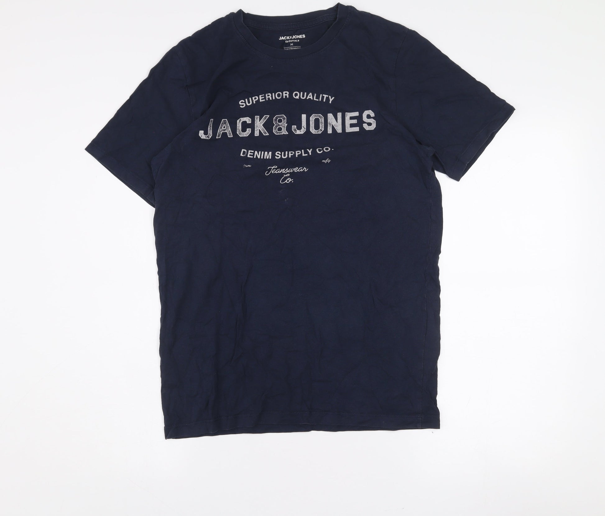 Jack & Jones Men's Blue Graphic Print Crew Neck T-Shirt Size M