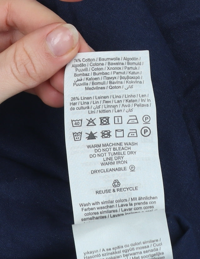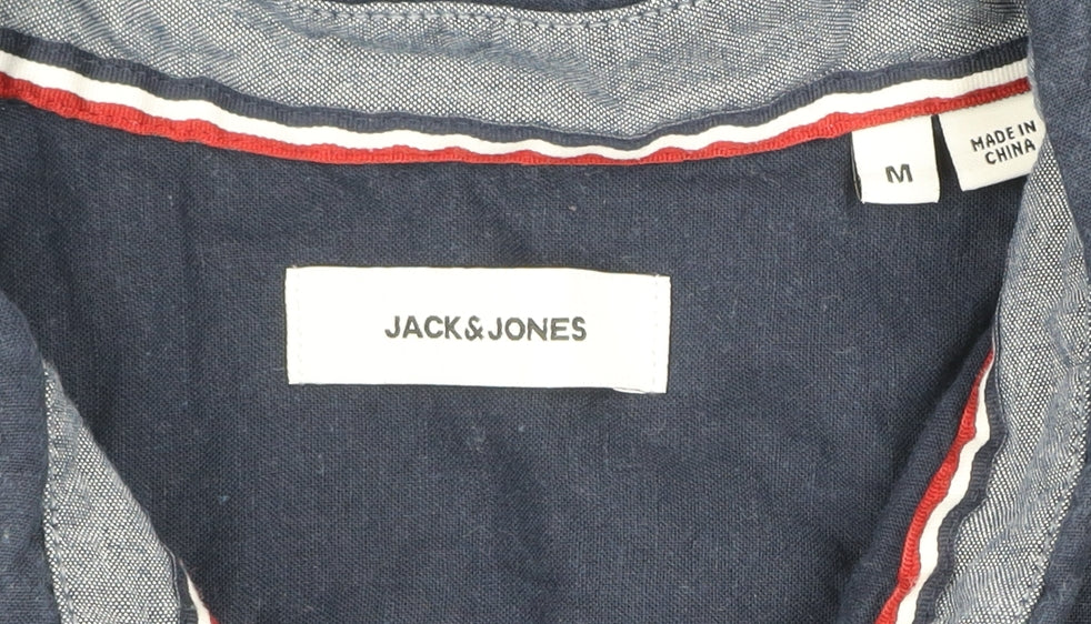 Jack & Jones Men's Blue Linen Blend Short Sleeve Button-Up Shirt Size M