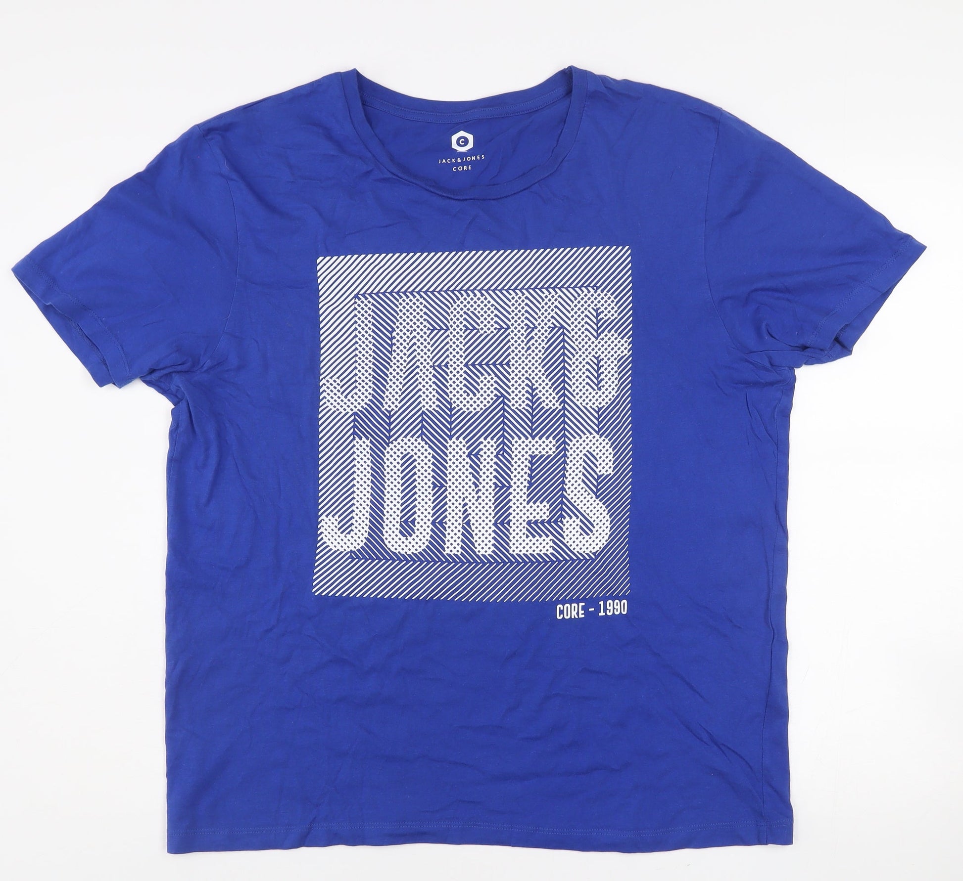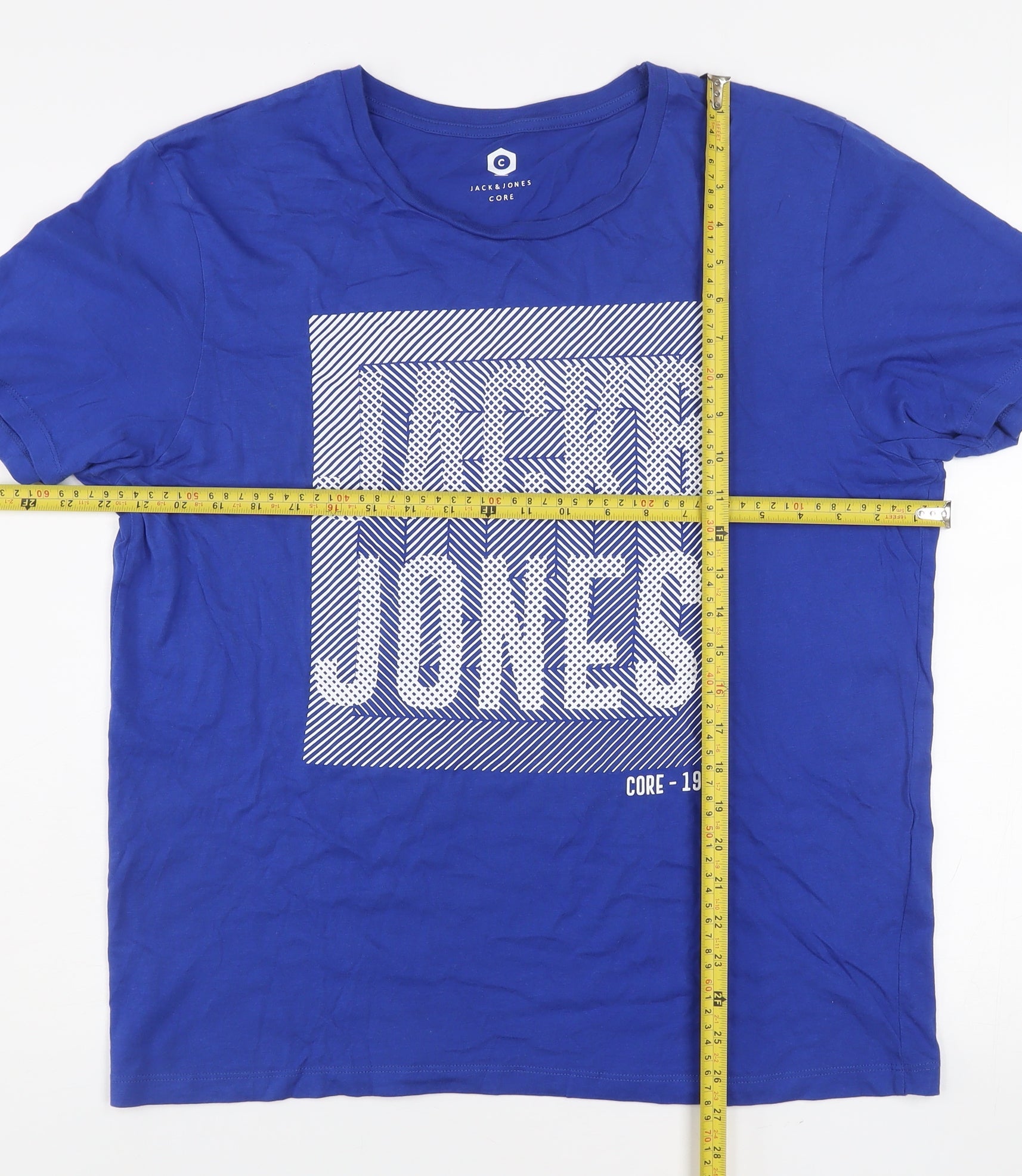 Jack & Jones Men's Blue XL Crew Neck Graphic T-Shirt