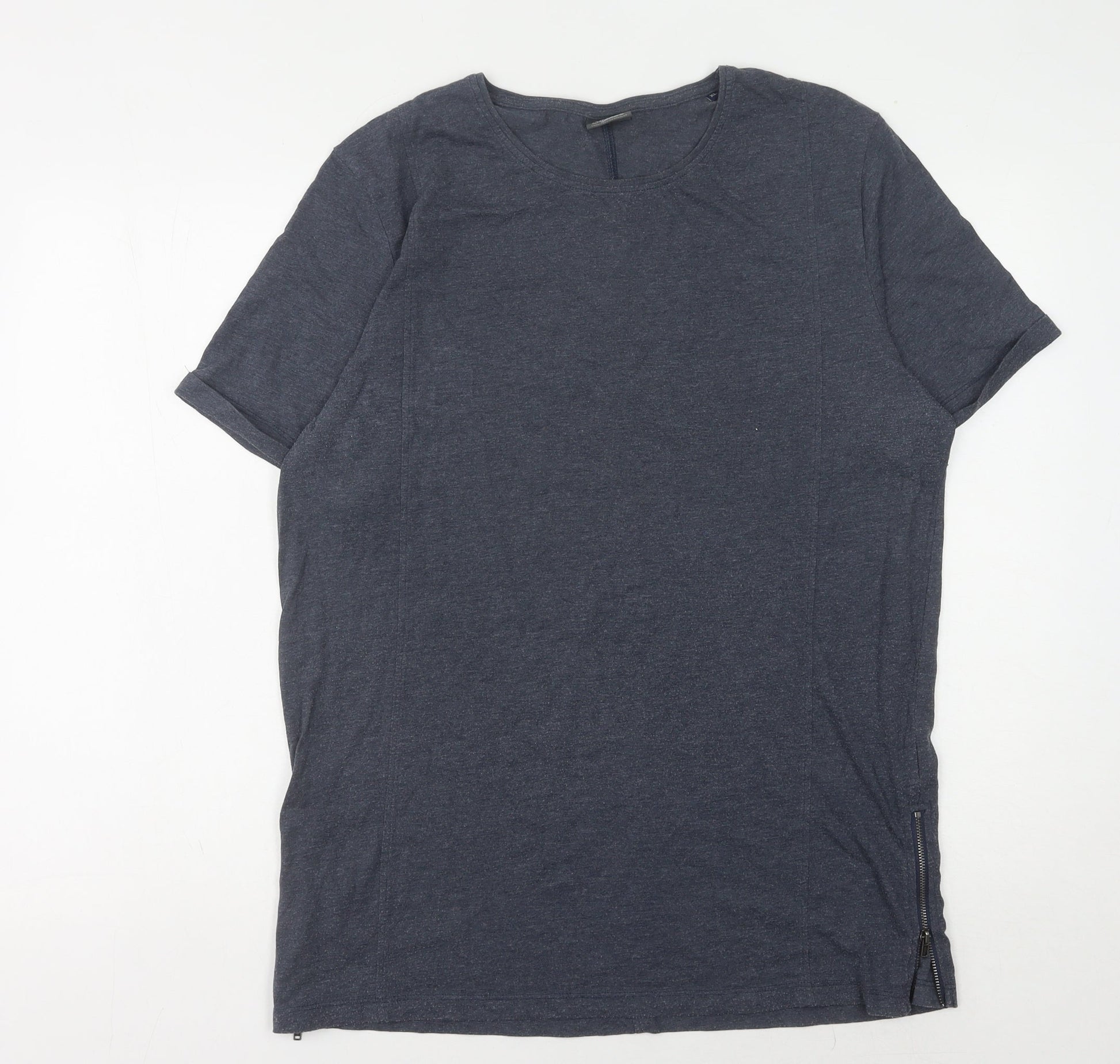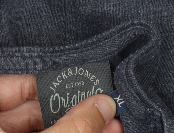 Jack & Jones Men's Blue XL Zipped Round Neck T-Shirt