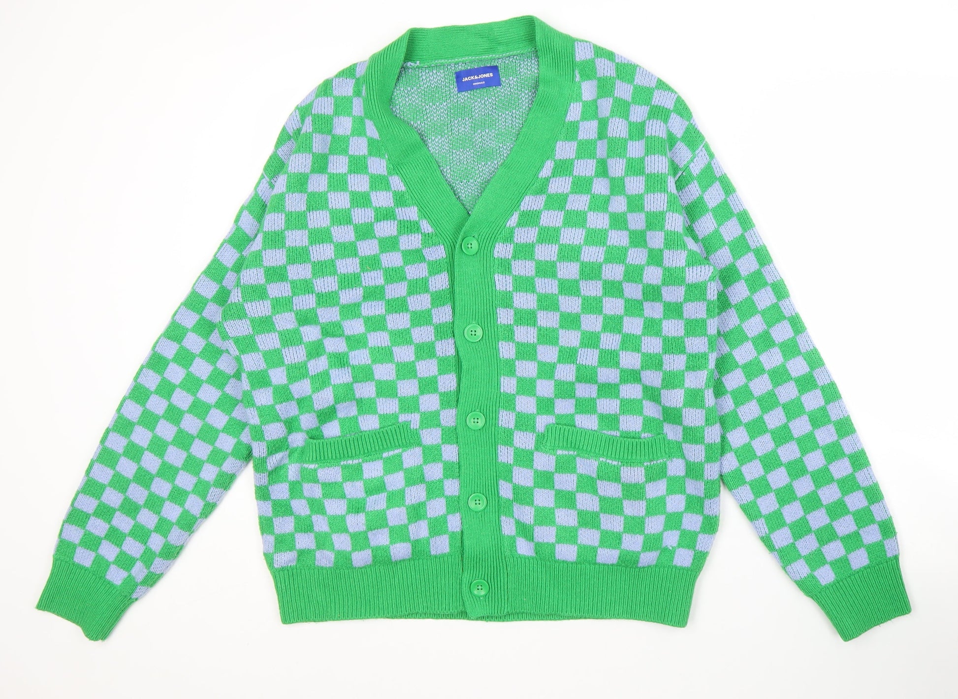 Jack & Jones Men's Green Checked Cardigan - Size L