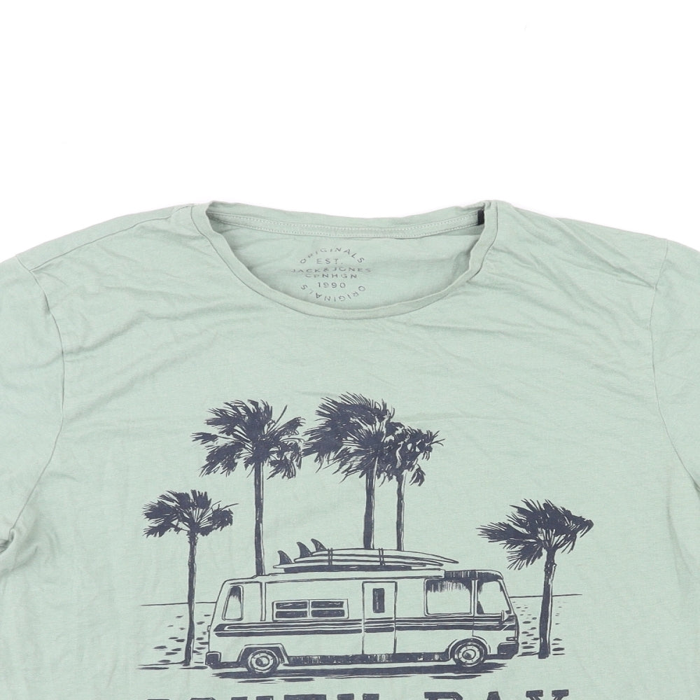 JACK & JONES Mens Green Cotton T-Shirt Size M Crew Neck - South Bay Local