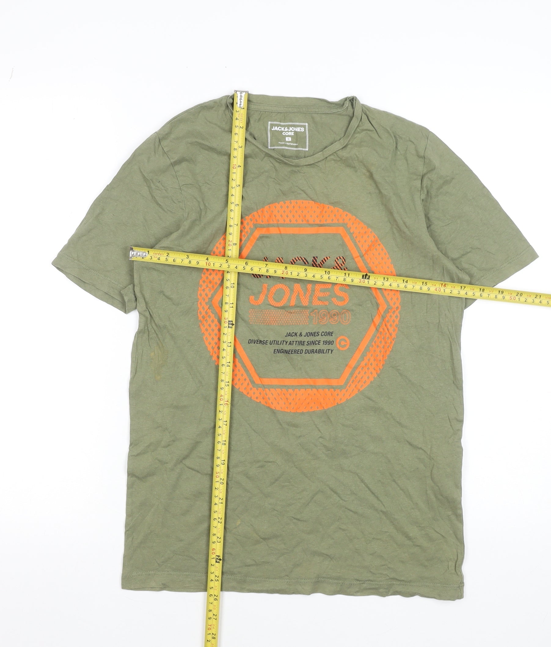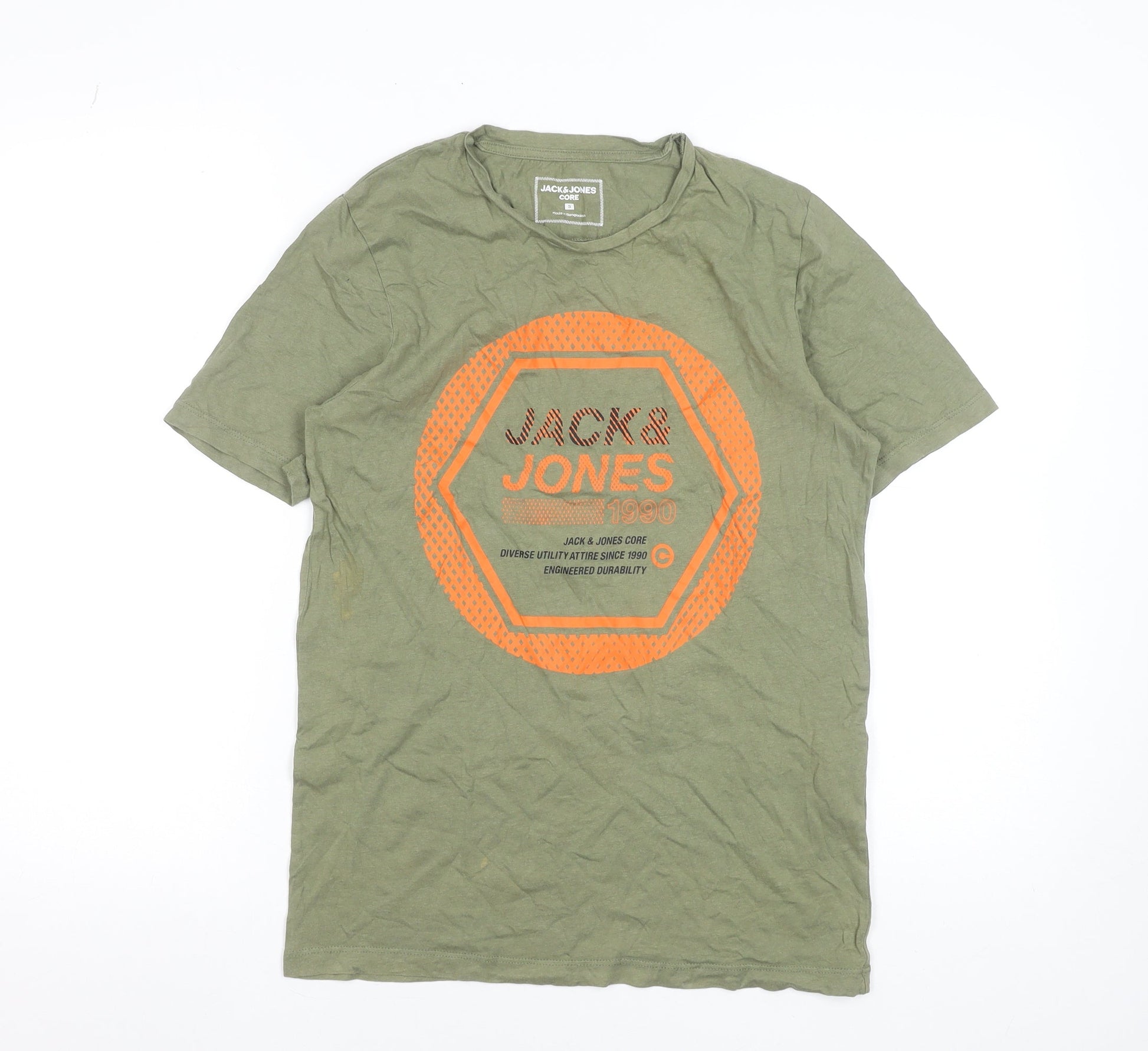 Jack & Jones Men's Green Graphic Print Cotton T-Shirt Size S