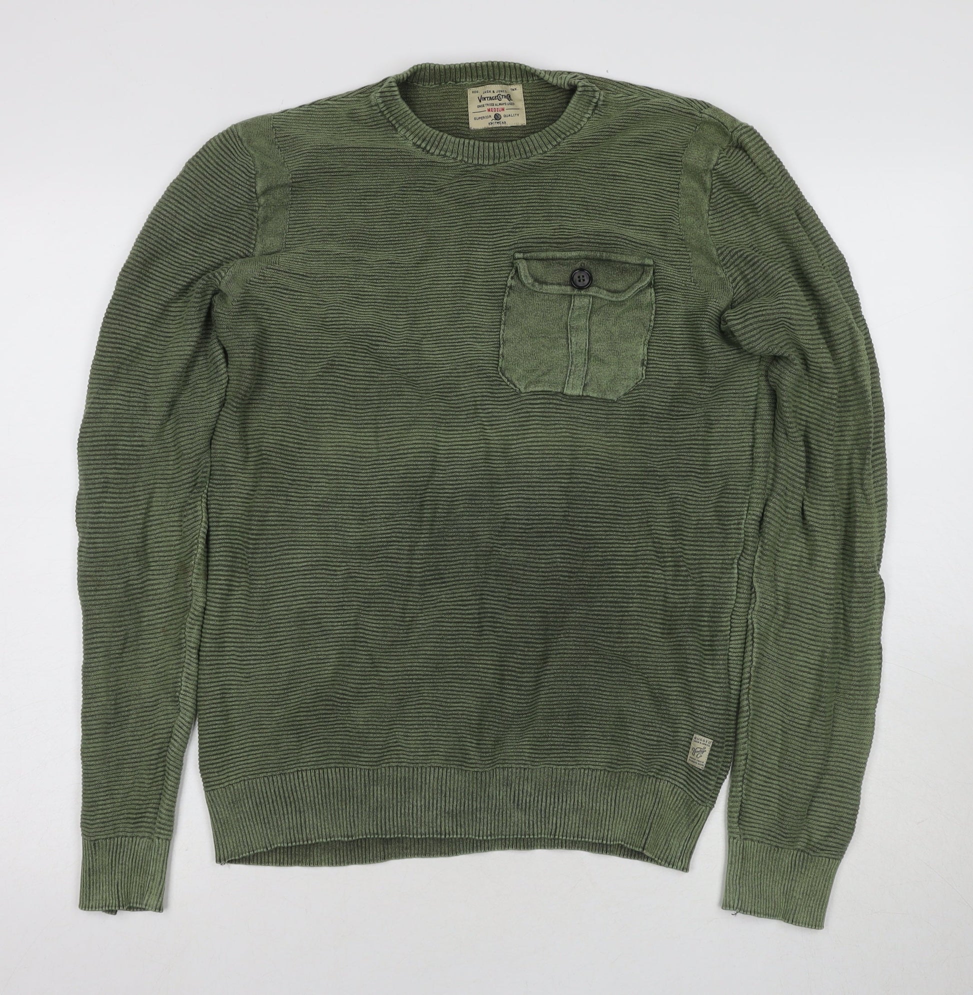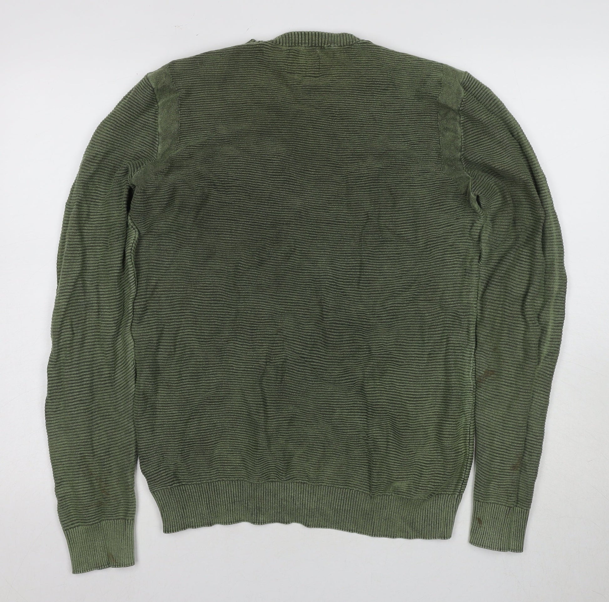 Jack & Jones Men's Green Medium Cotton Pullover Jumper