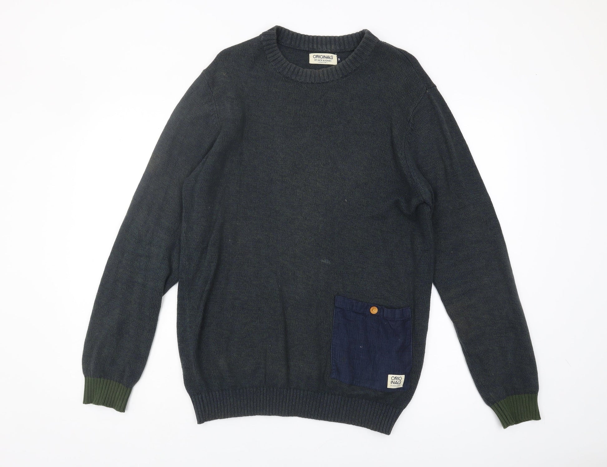 Jack & Jones Mens Green Pullover Jumper M Cotton Casual