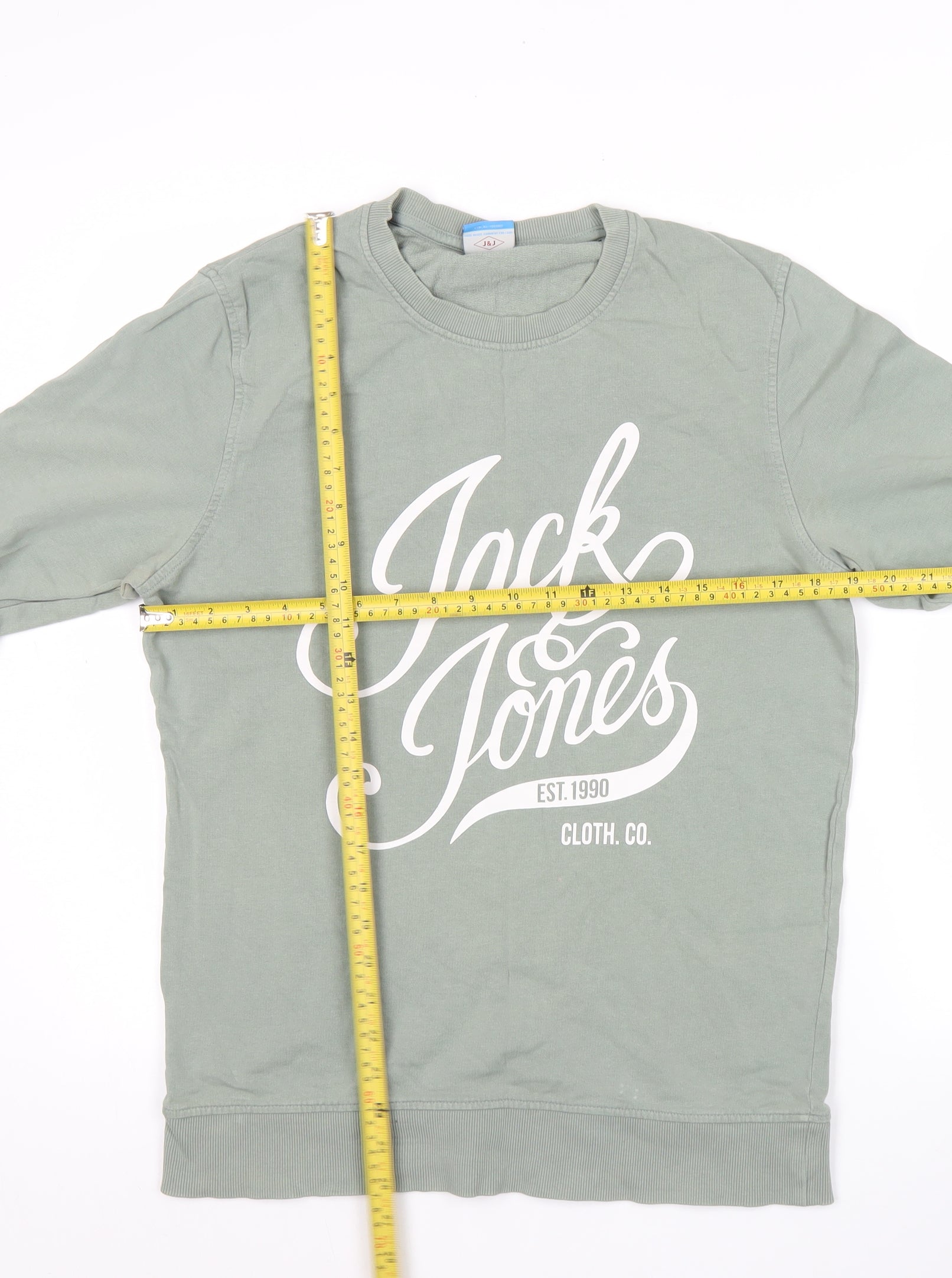 Jack & Jones Mens Green Pullover Sweatshirt M Graphic Print Logo