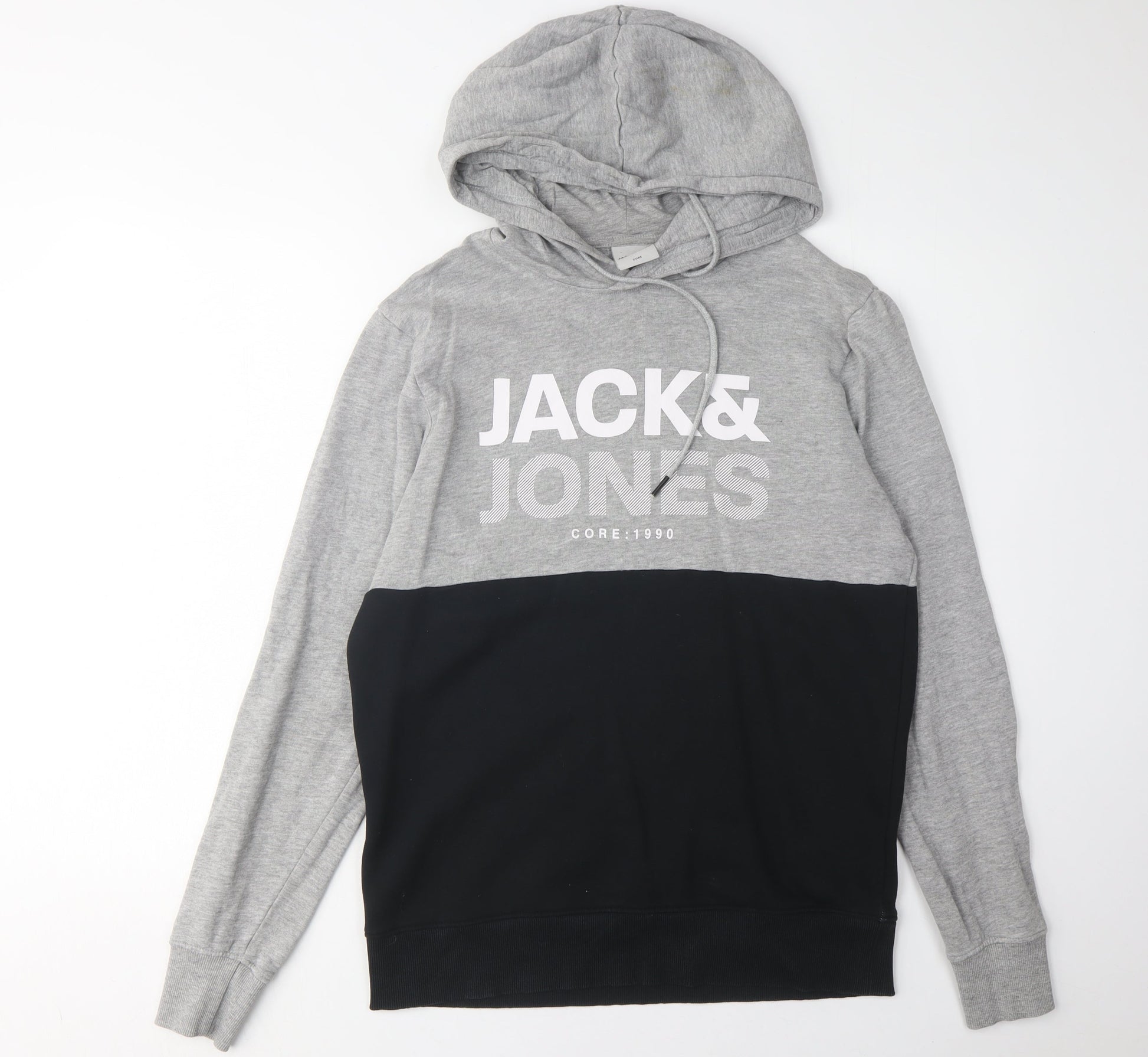 Jack & Jones Men's Grey and Black Pullover Hoodie S