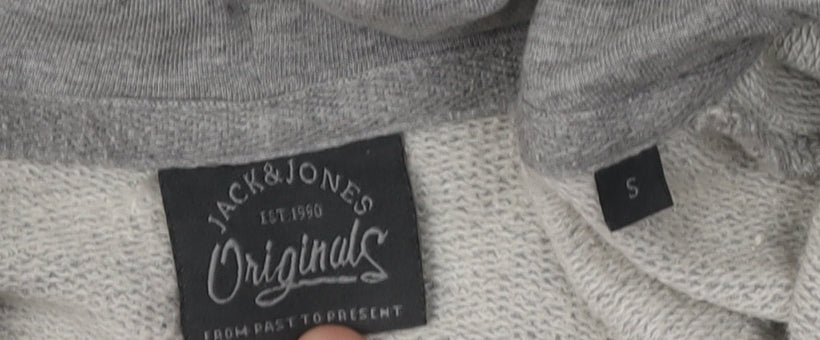 - Keywords: Jack & Jones Men's Hoodie Grey Full Zip Cotton Polyester Regular Fit Casual Wear Machine Washable