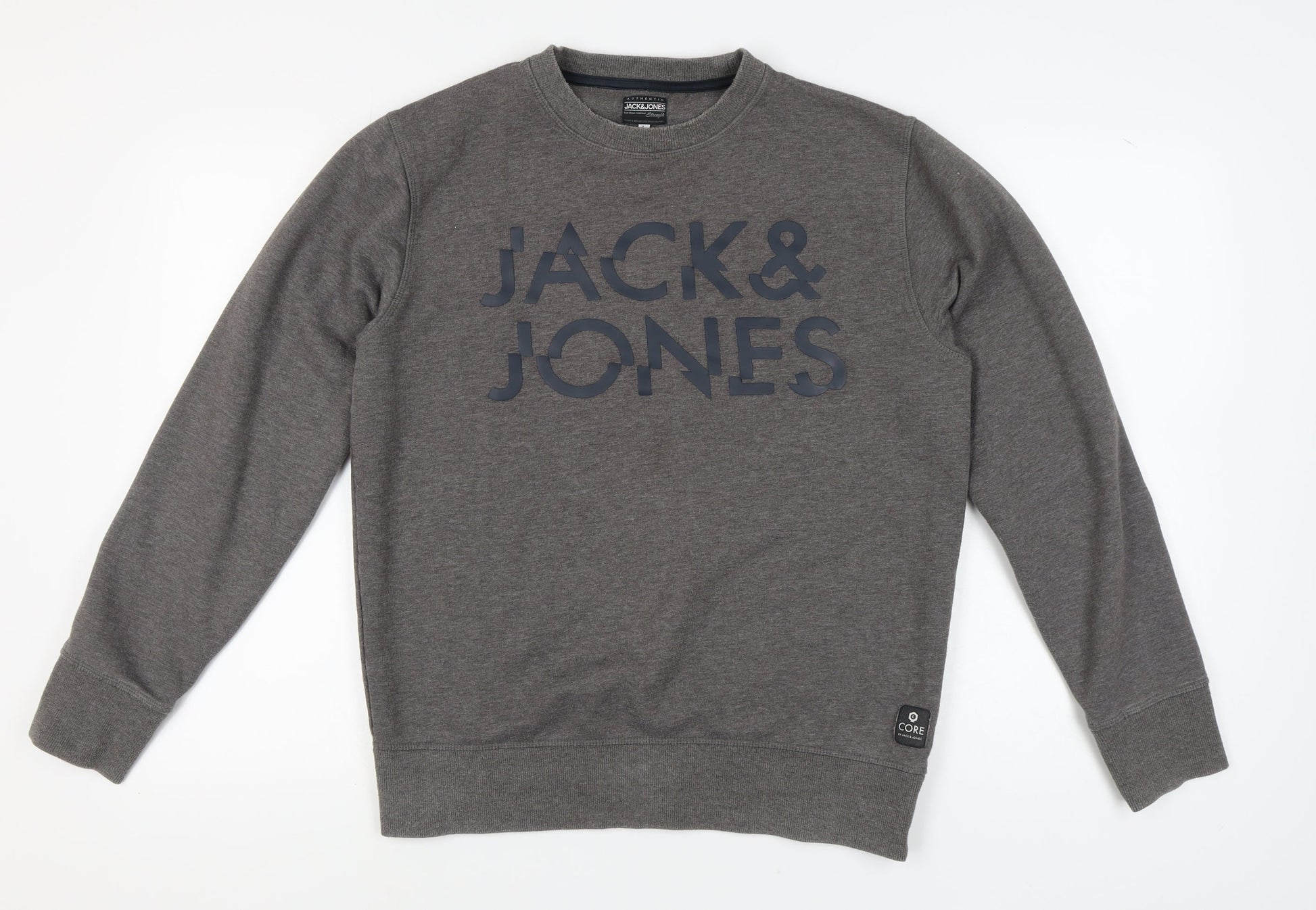 Jack & Jones Men's Grey Graphic Pullover Sweatshirt L