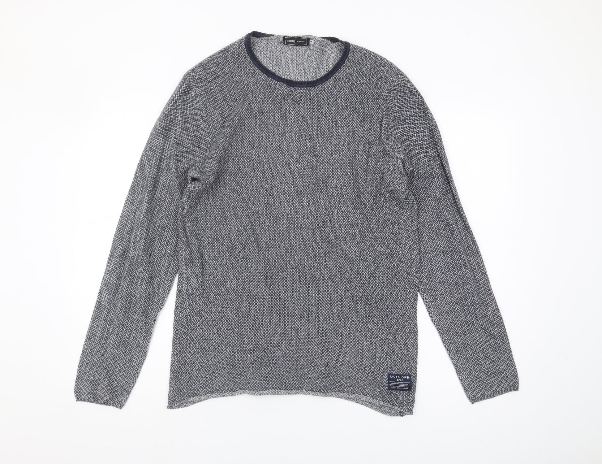 Jack & Jones Men's Grey Knit T-Shirt, Size S, Long Sleeve