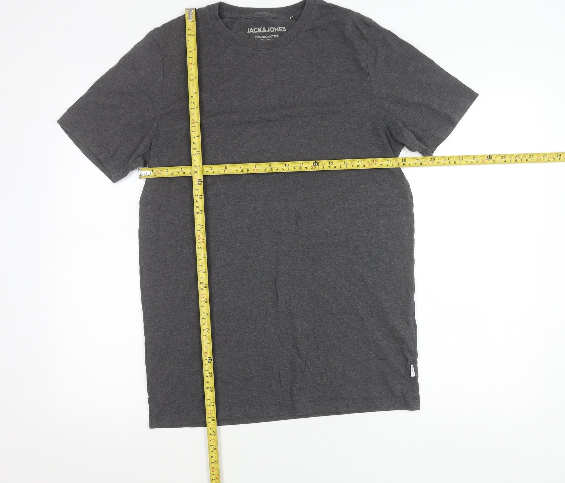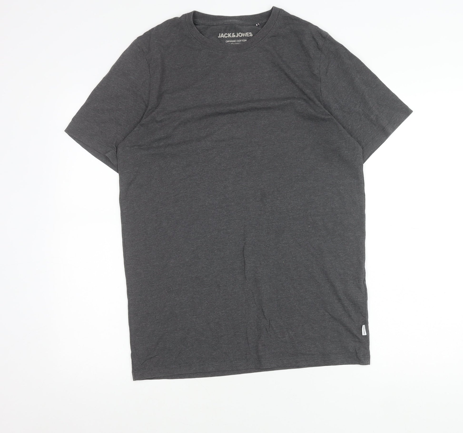 Jack & Jones Men's Grey L Organic Cotton Crew Neck T-Shirt