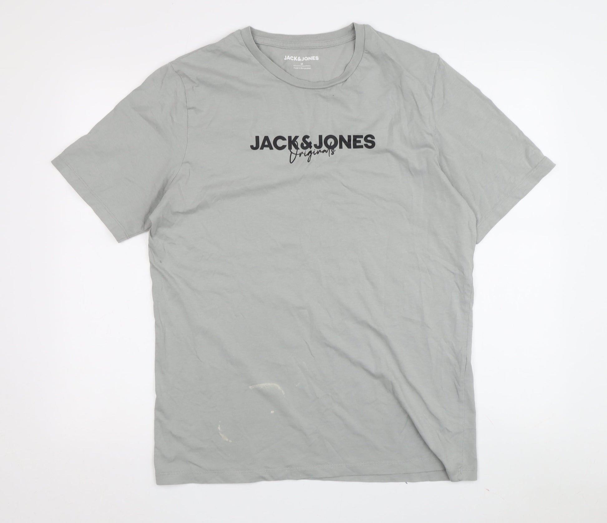 Jack & Jones Men's Grey Logo T-Shirt, Cotton, Medium