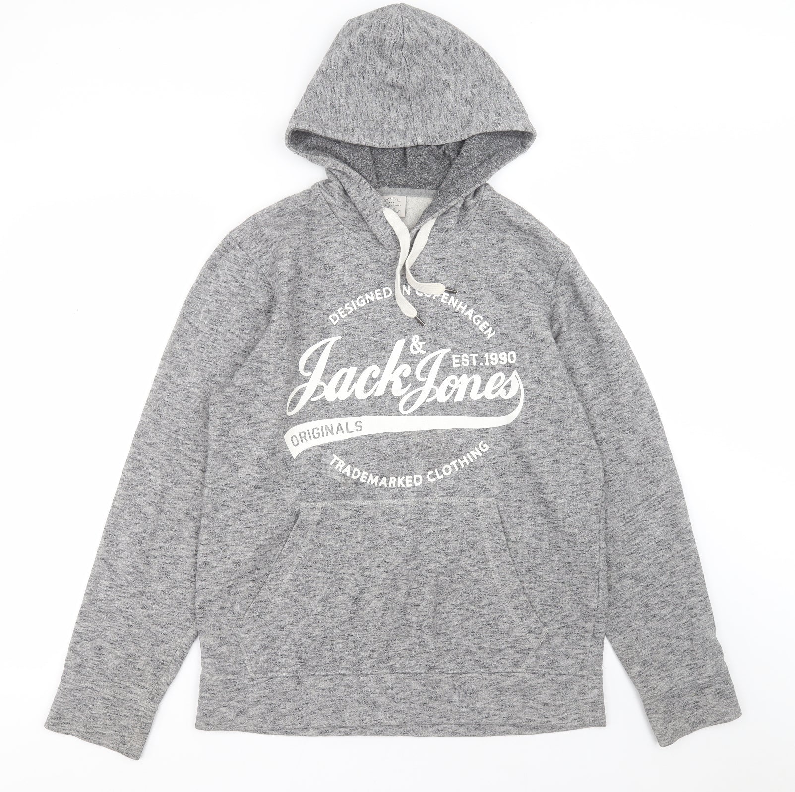 JACK & JONES Mens Grey Polyester Pullover Hoodie Size M