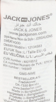 Jack & Jones Men's Grey Pullover Hoodie, L