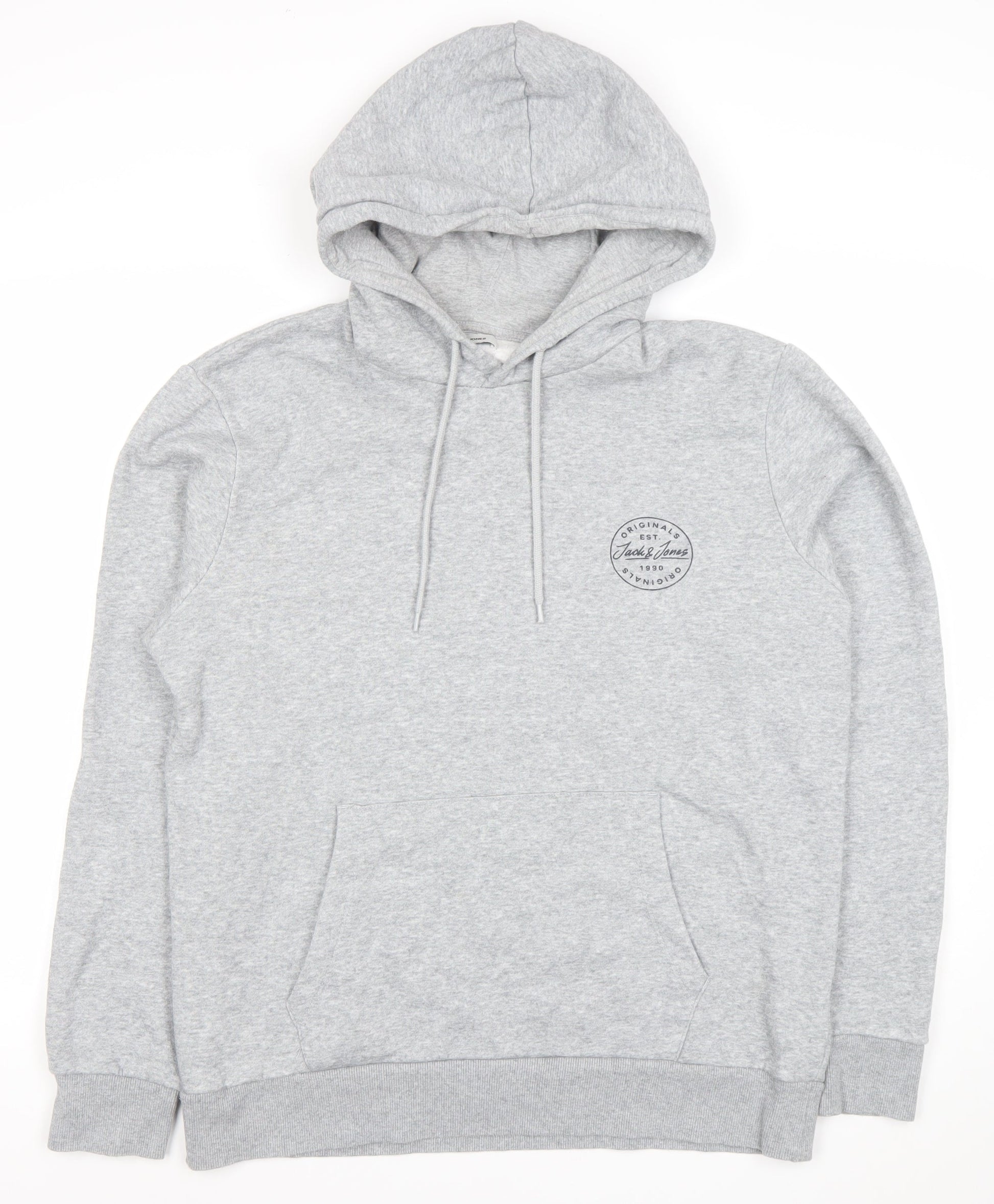 Jack & Jones Men's Grey Pullover Hoodie L Logo Print Cotton Blend