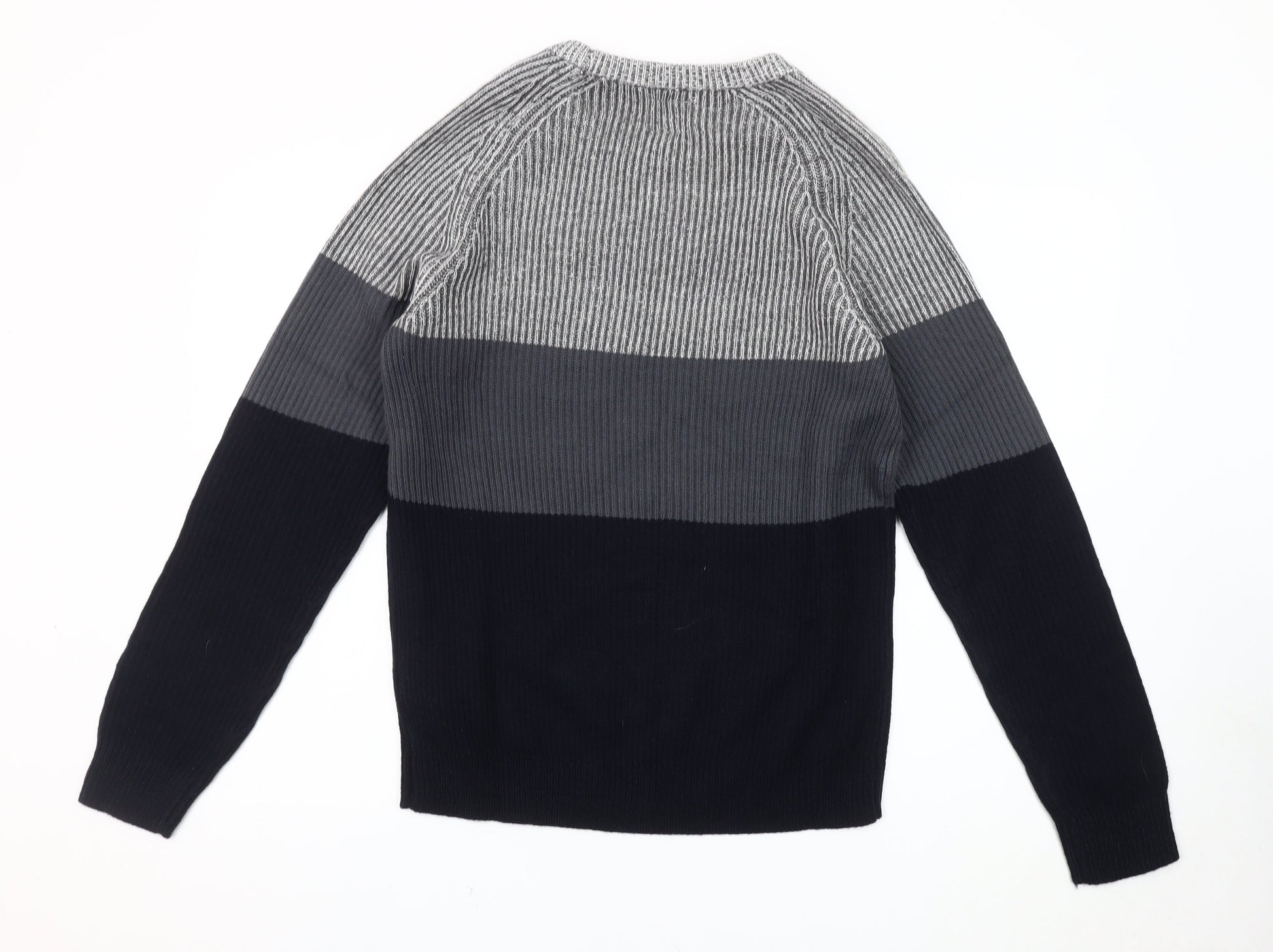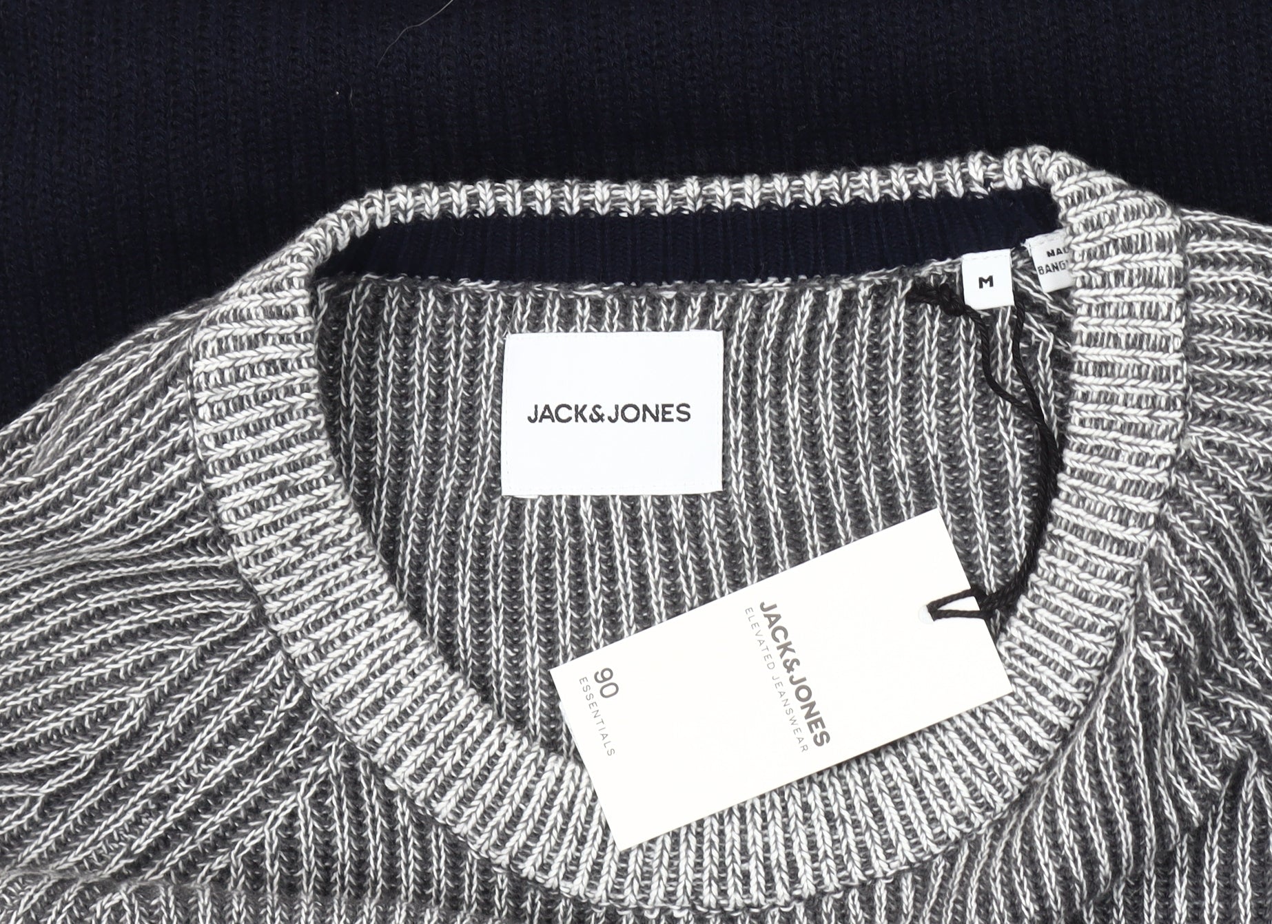 Jack & Jones Men's Grey Striped Pullover Jumper Size M